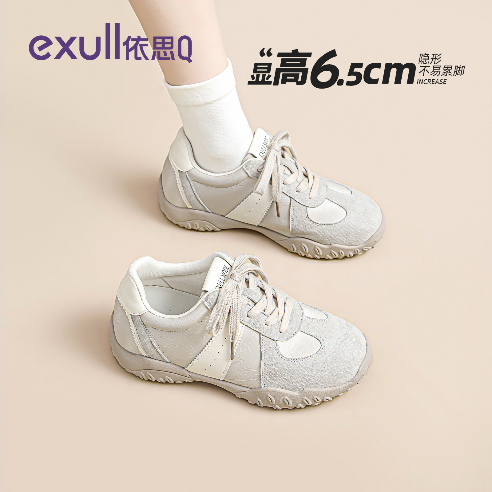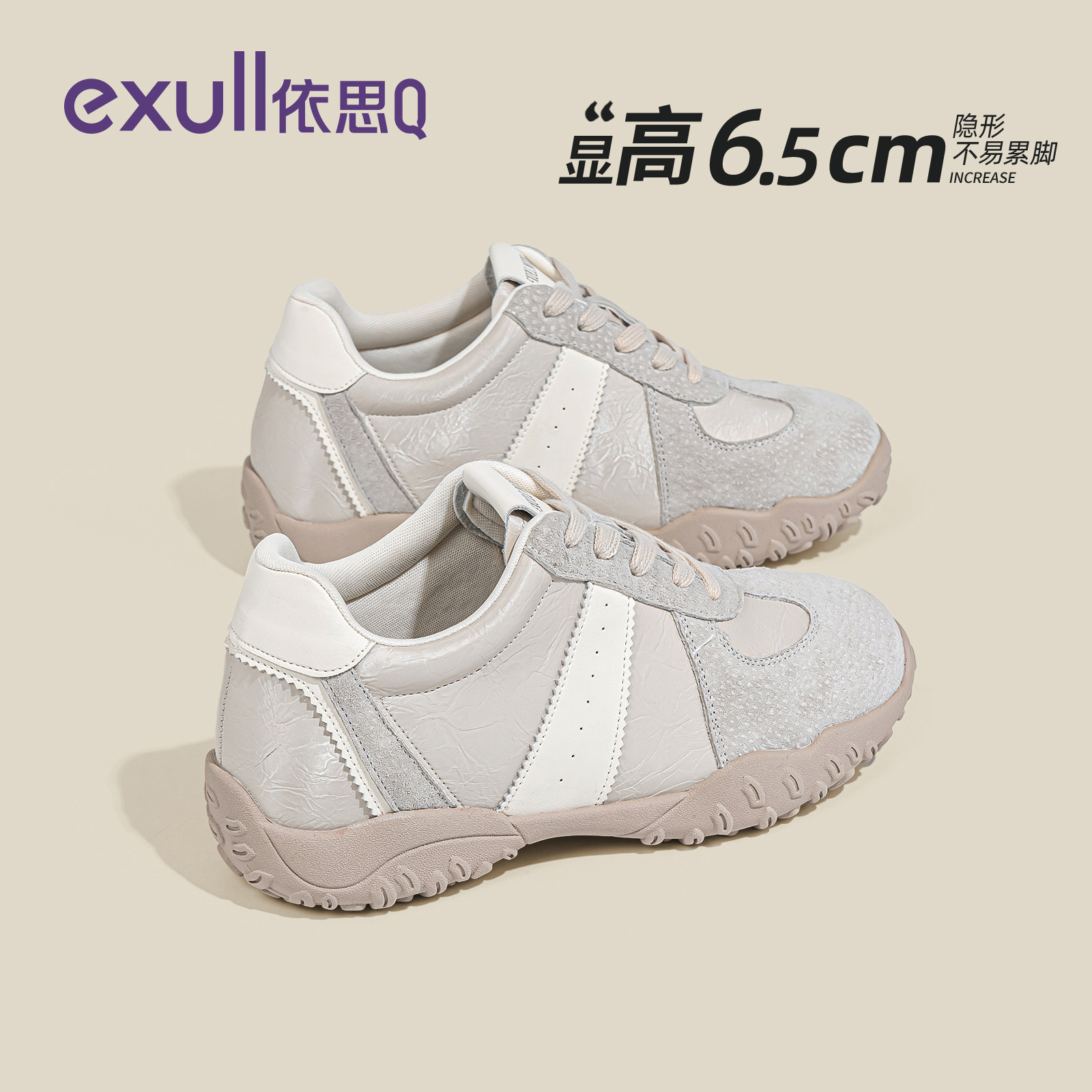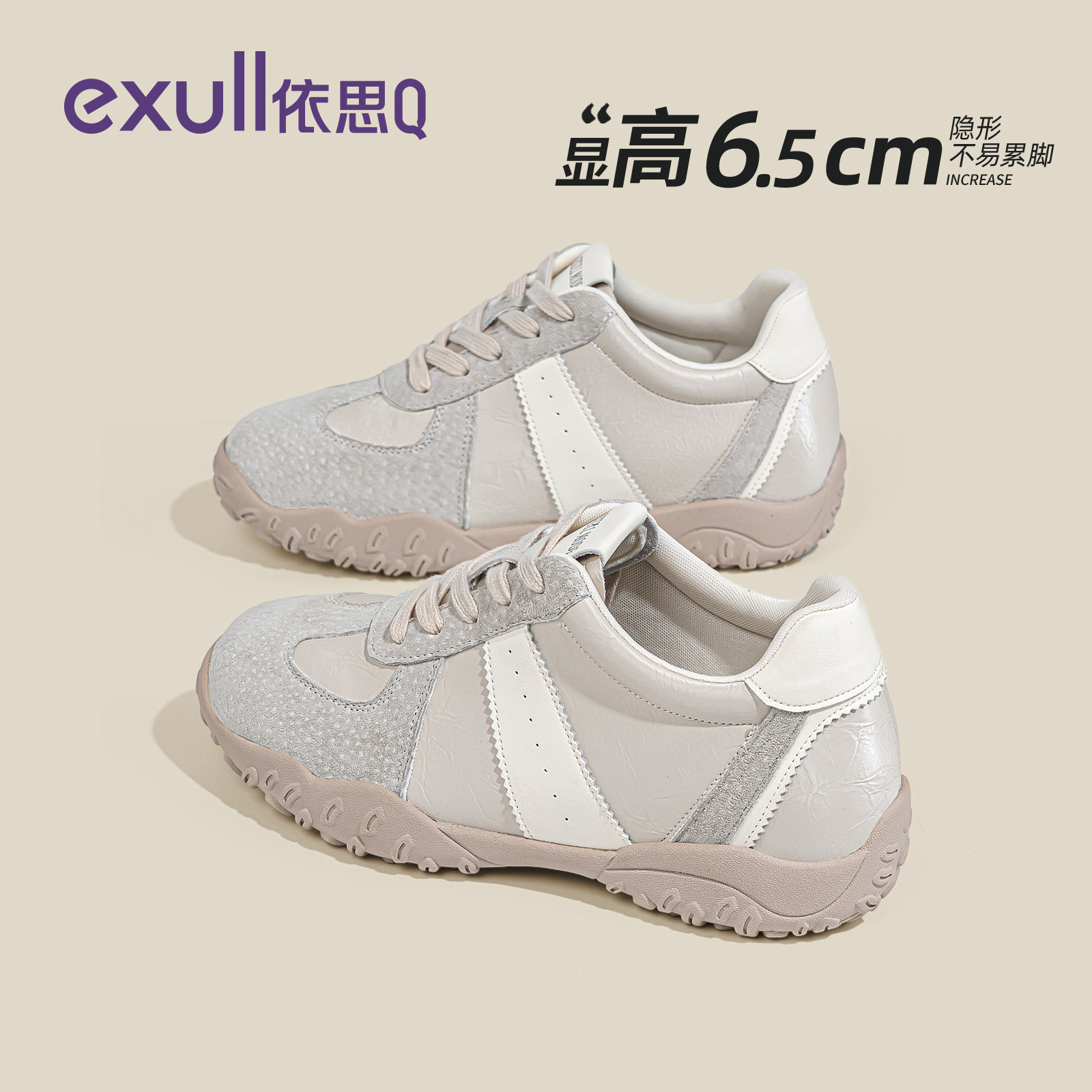 依思q真皮厚底德训鞋小个子内增高女鞋休闲鞋2026春季新款运动鞋