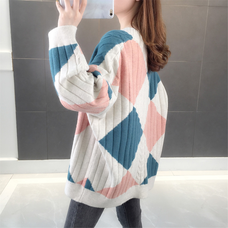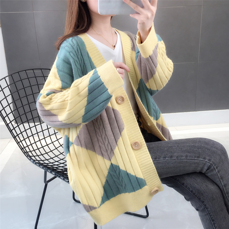 秋季韩版宽松慵懒风开衫毛衣女春秋新款撞色洋气网红针织外套百搭