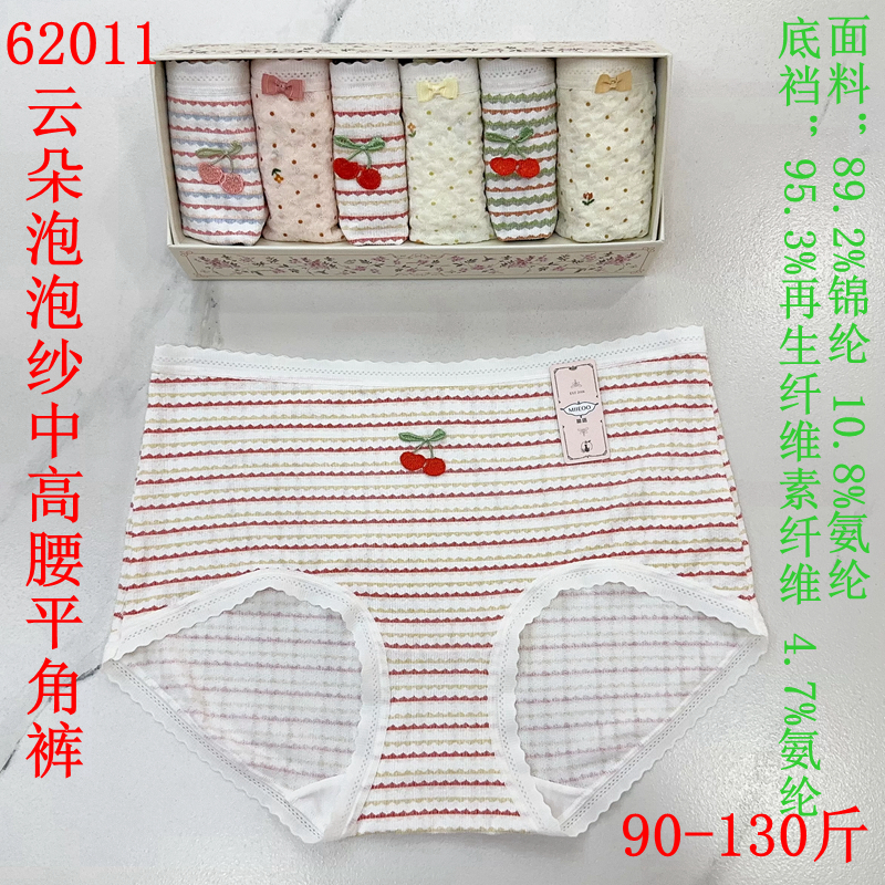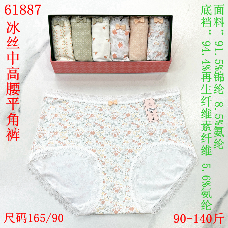 秘语内裤六条礼盒装舒适透气简约女士中高腰蕾丝边平角裤多款链接