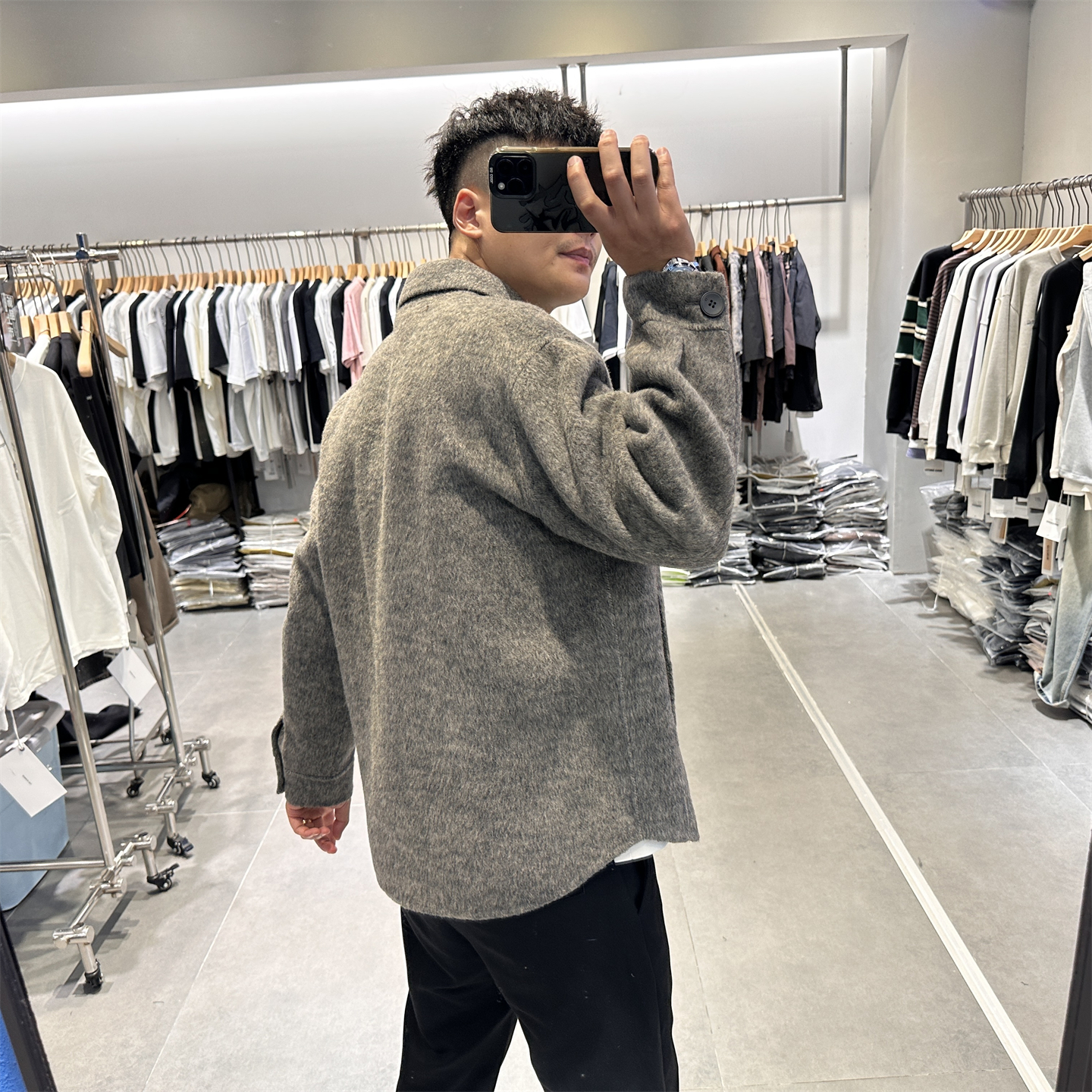 高级感轻奢翻领双面羊毛呢大衣男秋冬韩系复古宽松廓形衬衫款外套