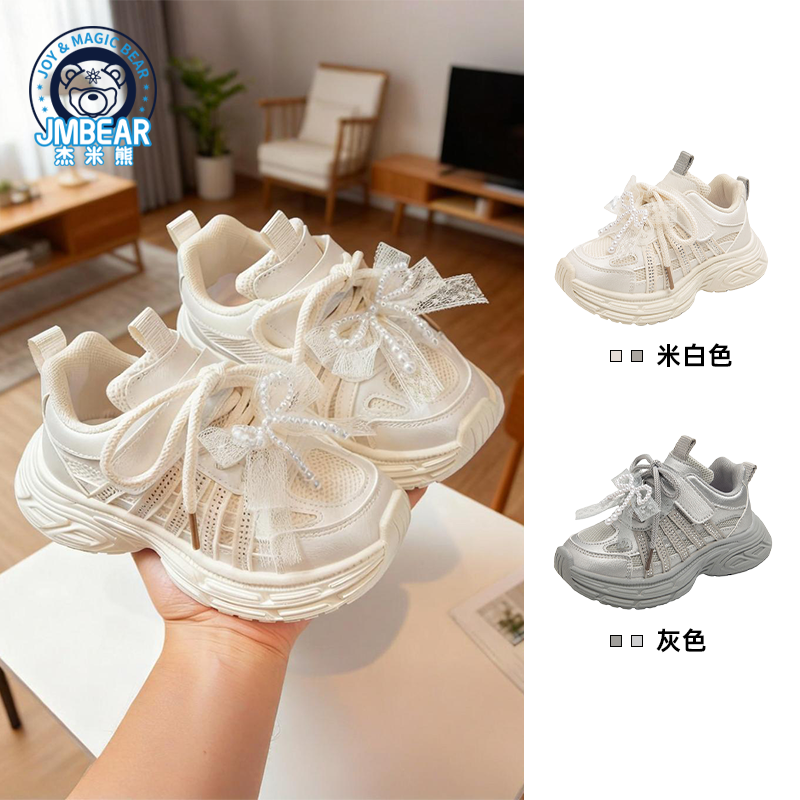 杰米熊童鞋2025秋季新款女童百搭魔术贴防滑耐磨老爹鞋透气休闲鞋