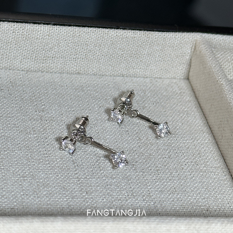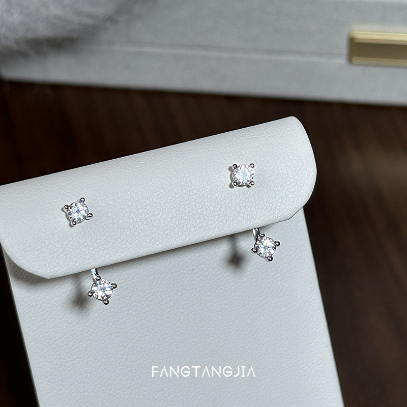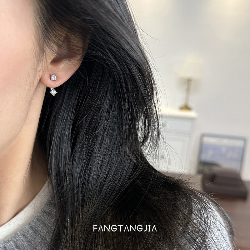 方糖家 精致简约四爪锆石后挂式耳钉通勤气质小巧耳环女秋冬百搭