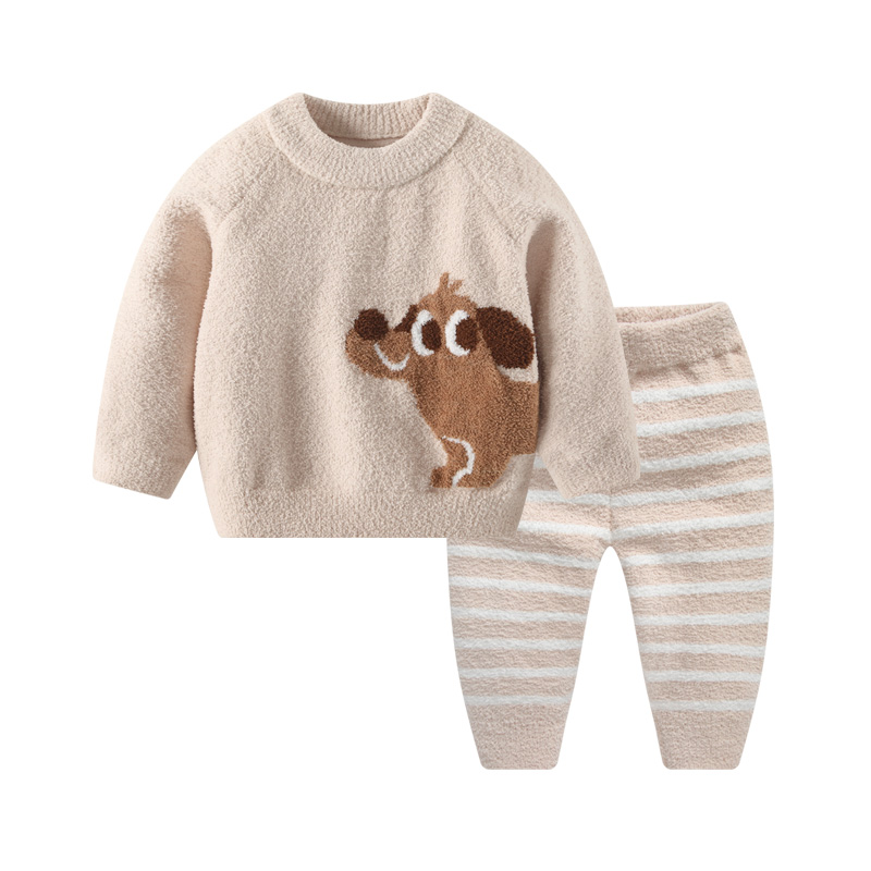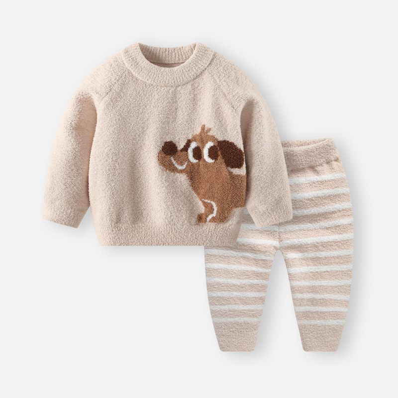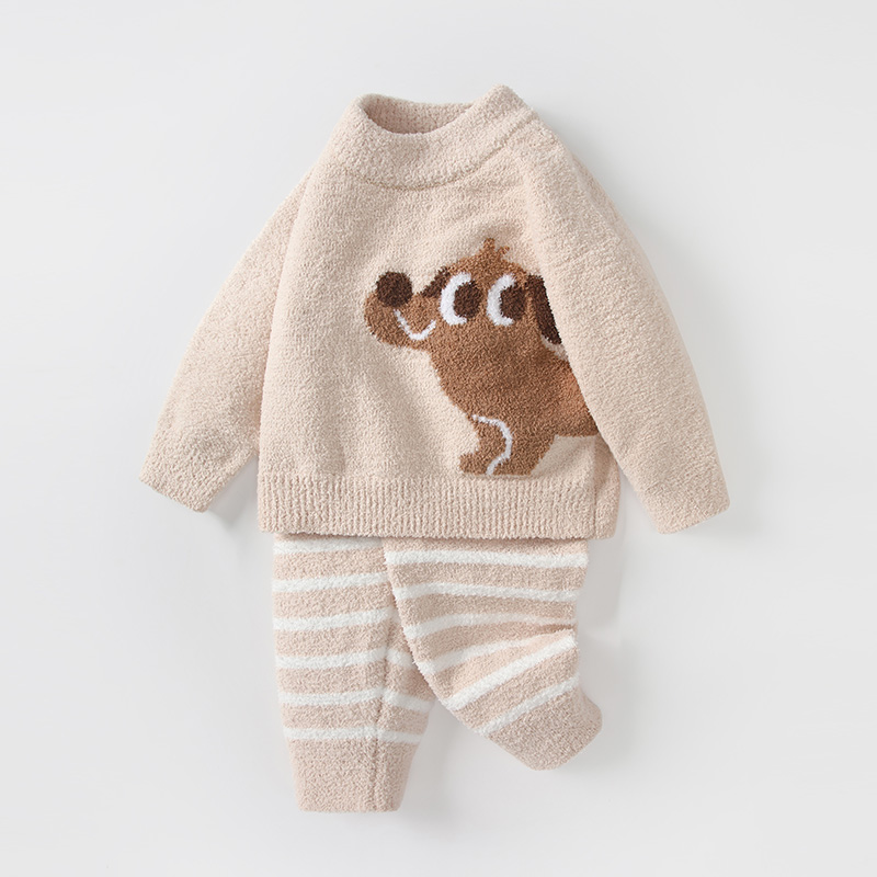 婴儿套装秋冬男宝宝雪尼尔半边绒加厚毛衣上衣男童冬季针织衫衣服