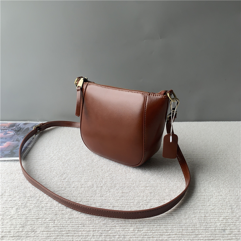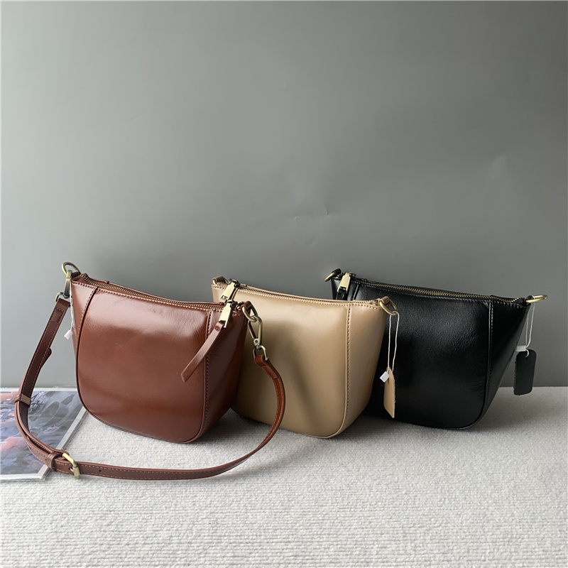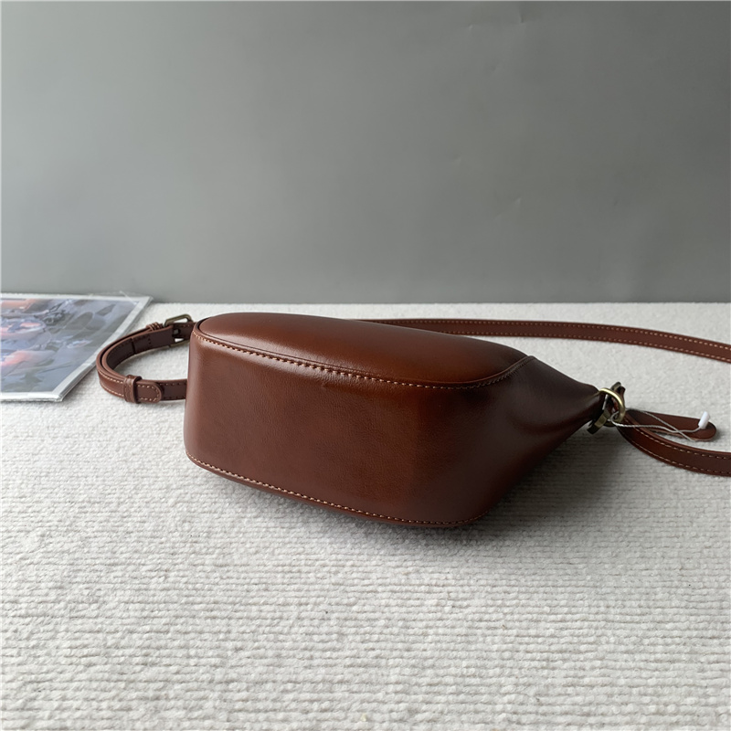 2024春季新款头层植鞣牛皮小包包单肩斜挎女包复古风百搭贝壳包