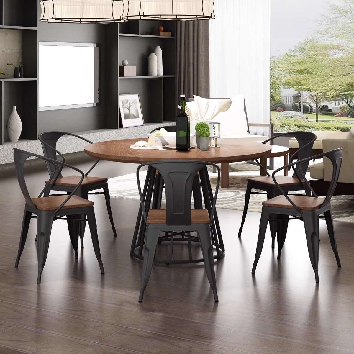 美式铁艺餐桌家用小户型圆桌饭店餐厅桌椅组合简约圆形实木洽谈桌