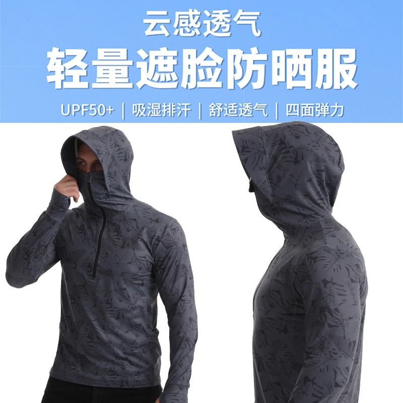 遮脸帽檐真冰丝防晒衣男款夏季新款防紫外线透气路亚钓鱼防晒服