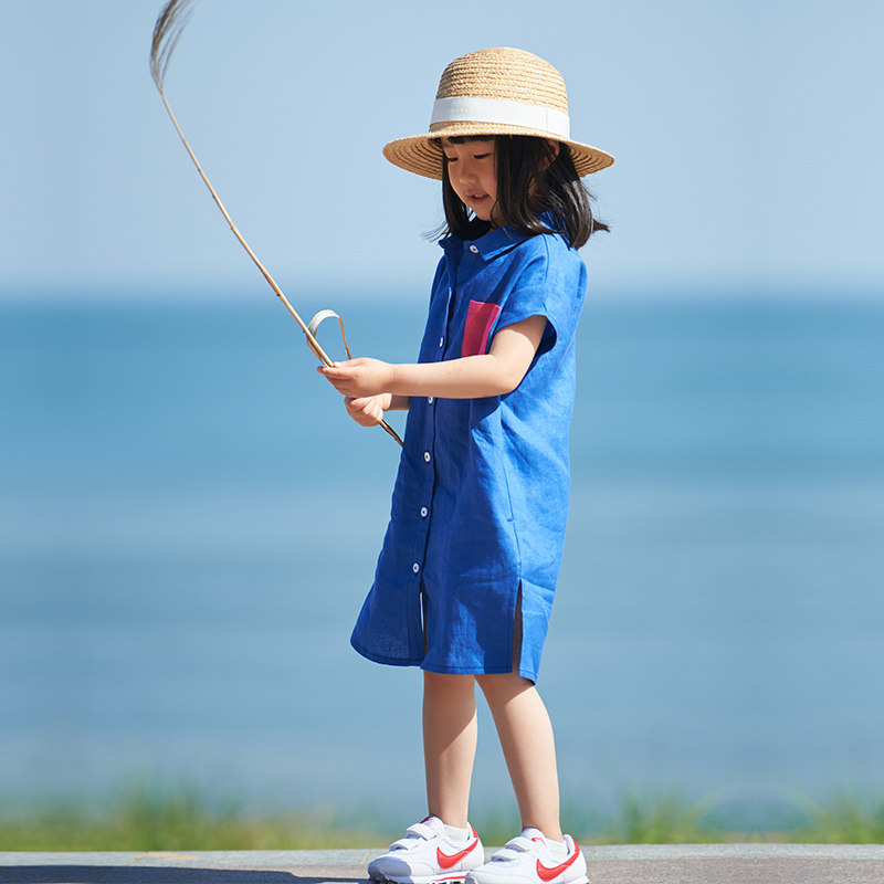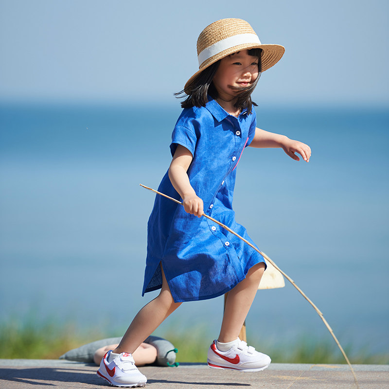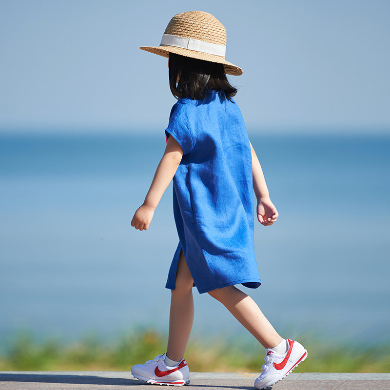 小乐往原创亲子装50课夏蓝色海边草原西藏度假拍照母女亚麻连衣裙