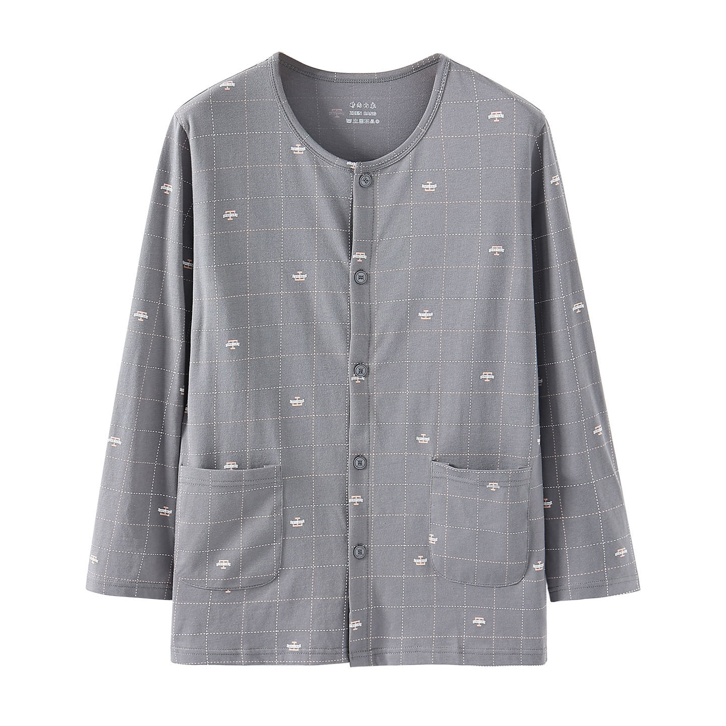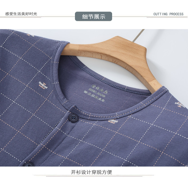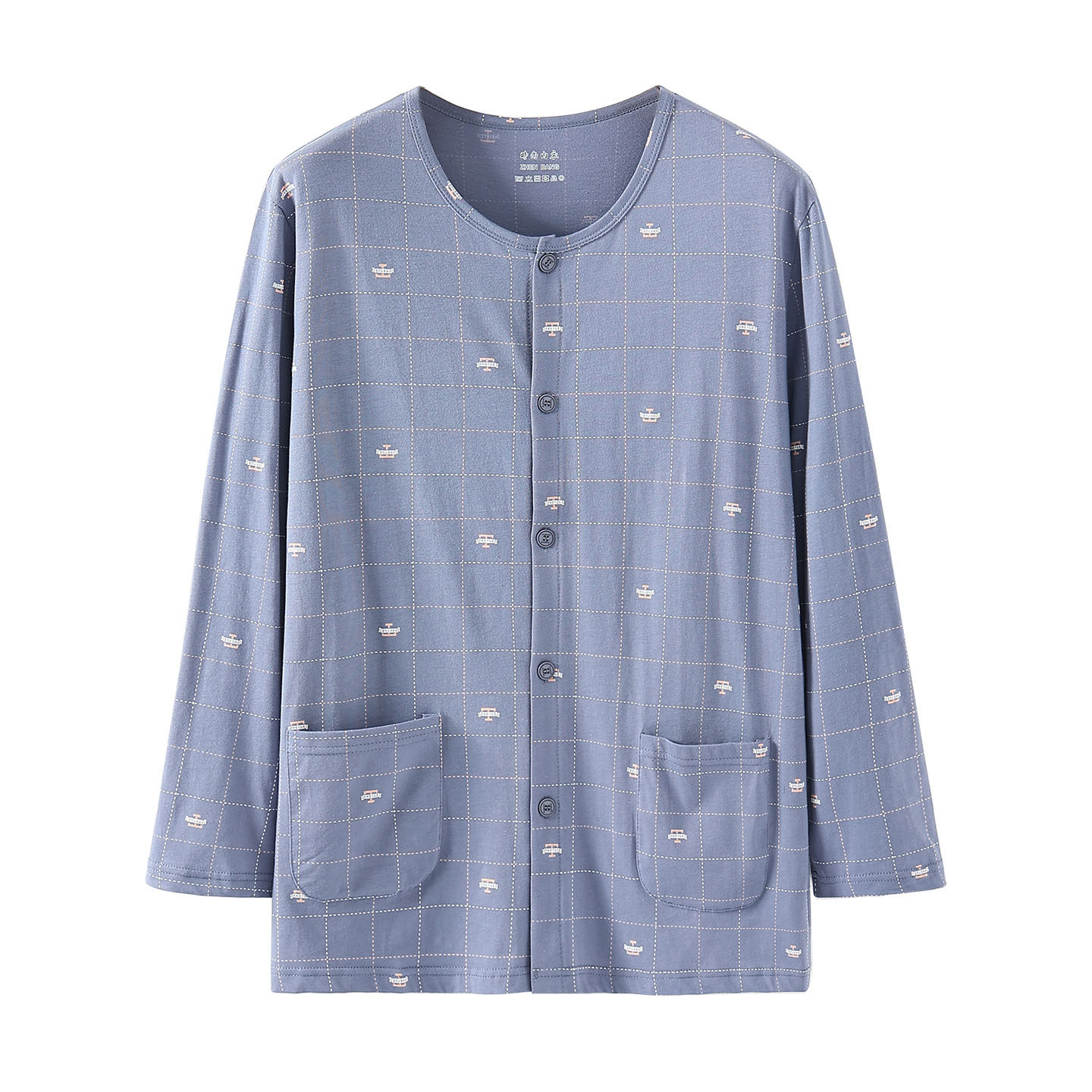 男士睡衣春夏薄款纯棉开衫长袖单件上衣可外穿爸爸宽松大码家居服