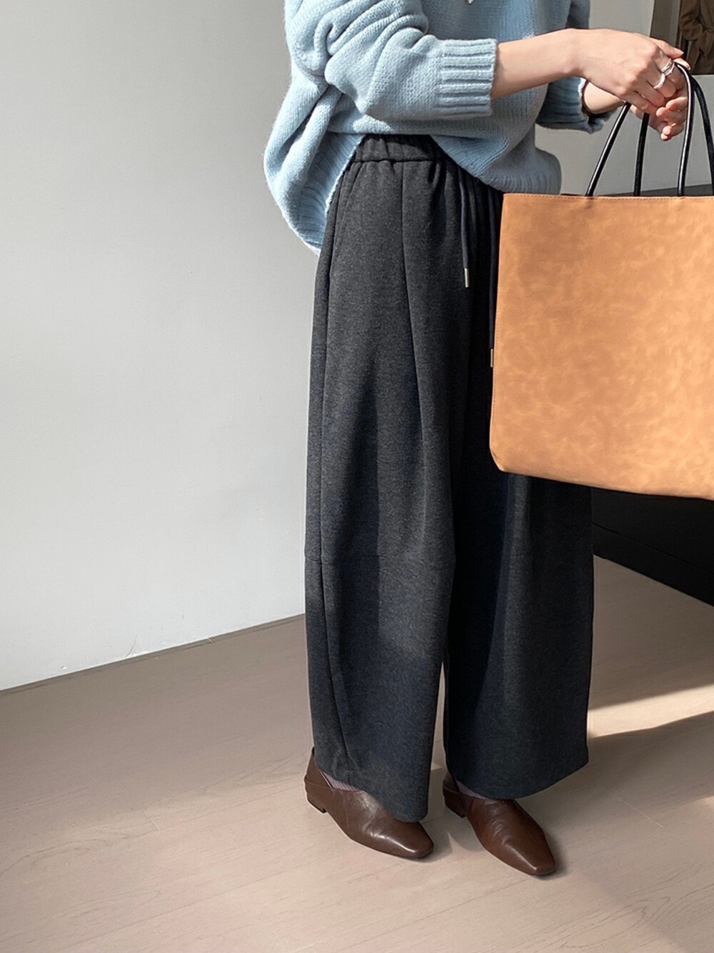 Flowerkeke日韩系慵懒加绒糯米羊绒灯笼松弛感弯刀阔腿休闲裤2875