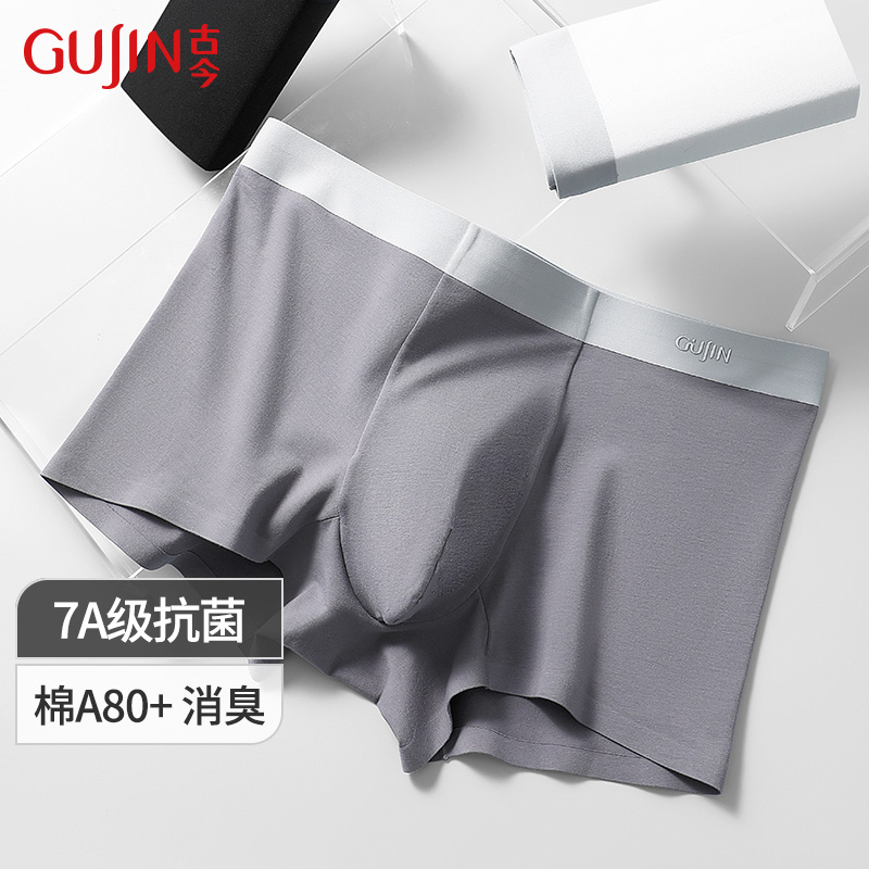古今7A级抗菌消臭男士内裤纯棉底裆青年无痕透气短裤男生平角裤头