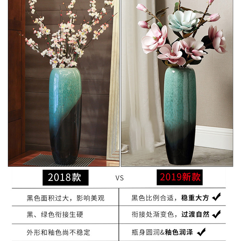 新中式干花落地花瓶陶瓷客厅轻奢欧式电视柜旁花高插花摆件大
