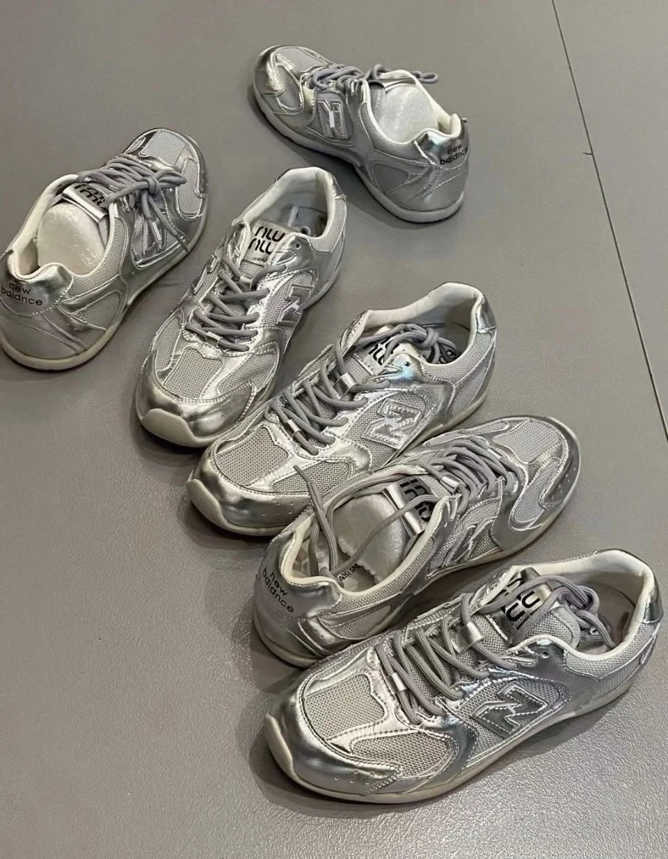 欧货银色复古德训鞋女真皮单鞋高级感小众透气网面休闲运动阿甘鞋
