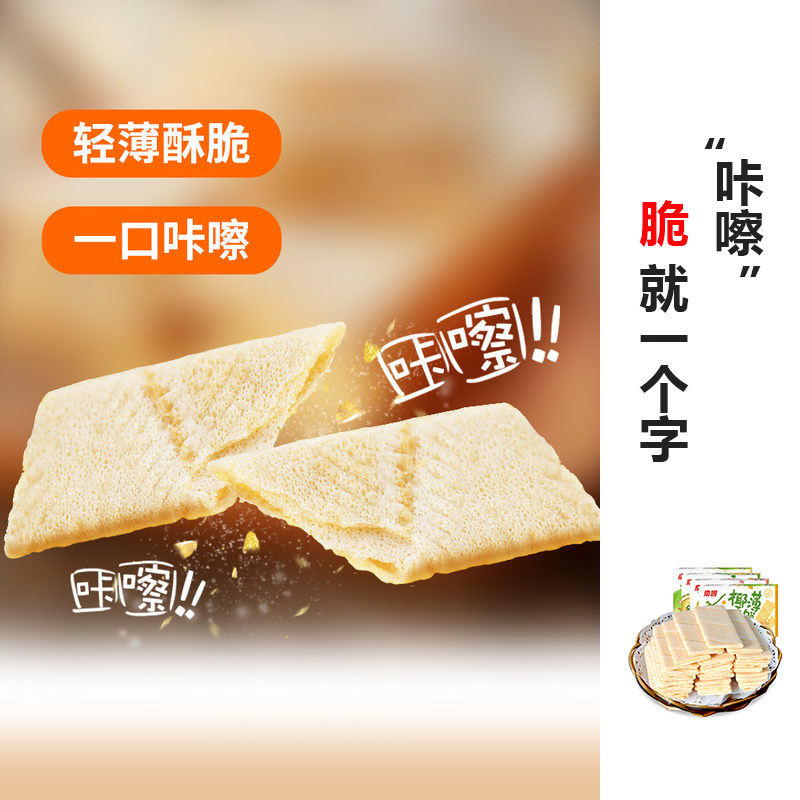 海南特产南国椰香薄饼干脆椰子休闲零食酥薄榴莲海盐咸味营养薄脆