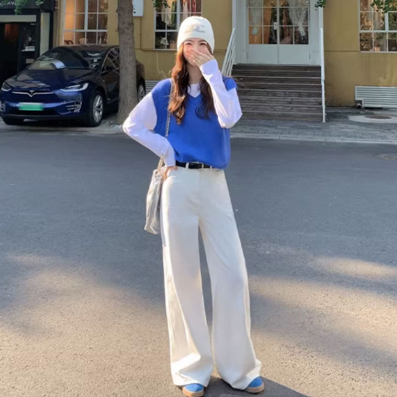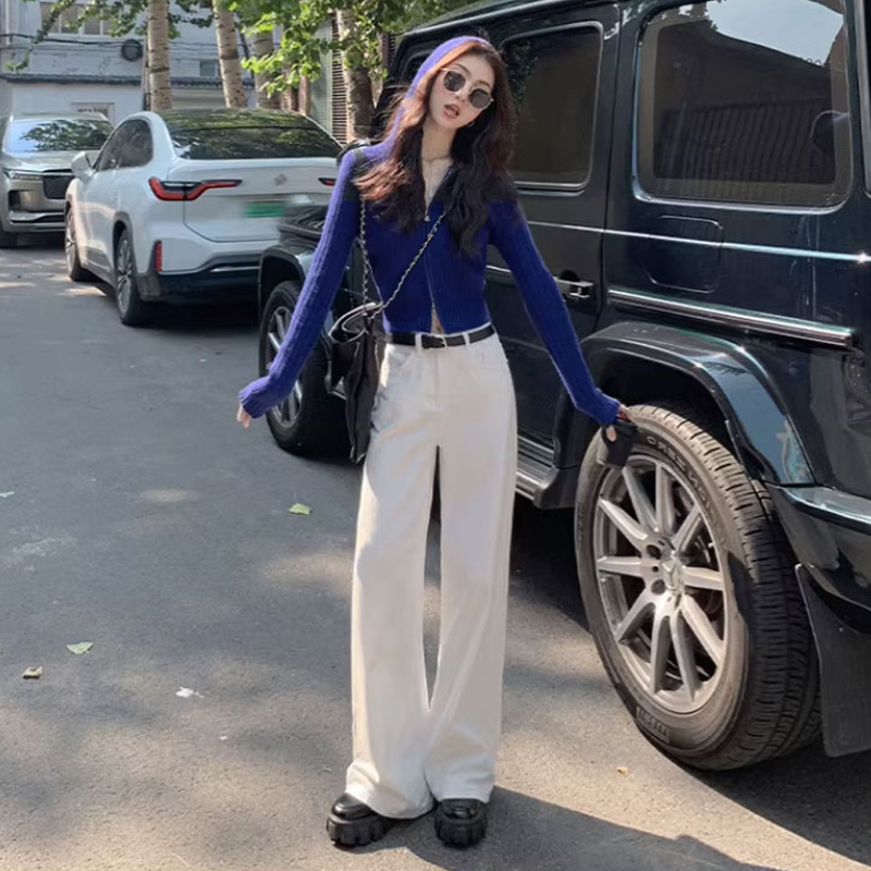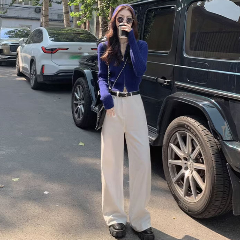 简约高腰白色阔腿休闲裤女2025年春季新款美式面料舒适瘦垂感长裤