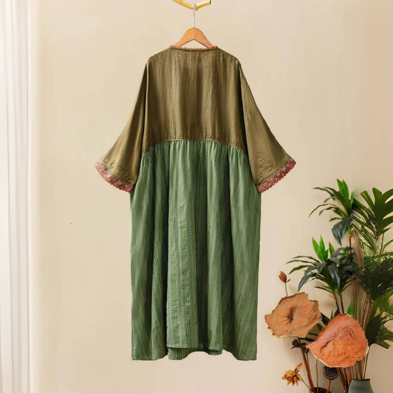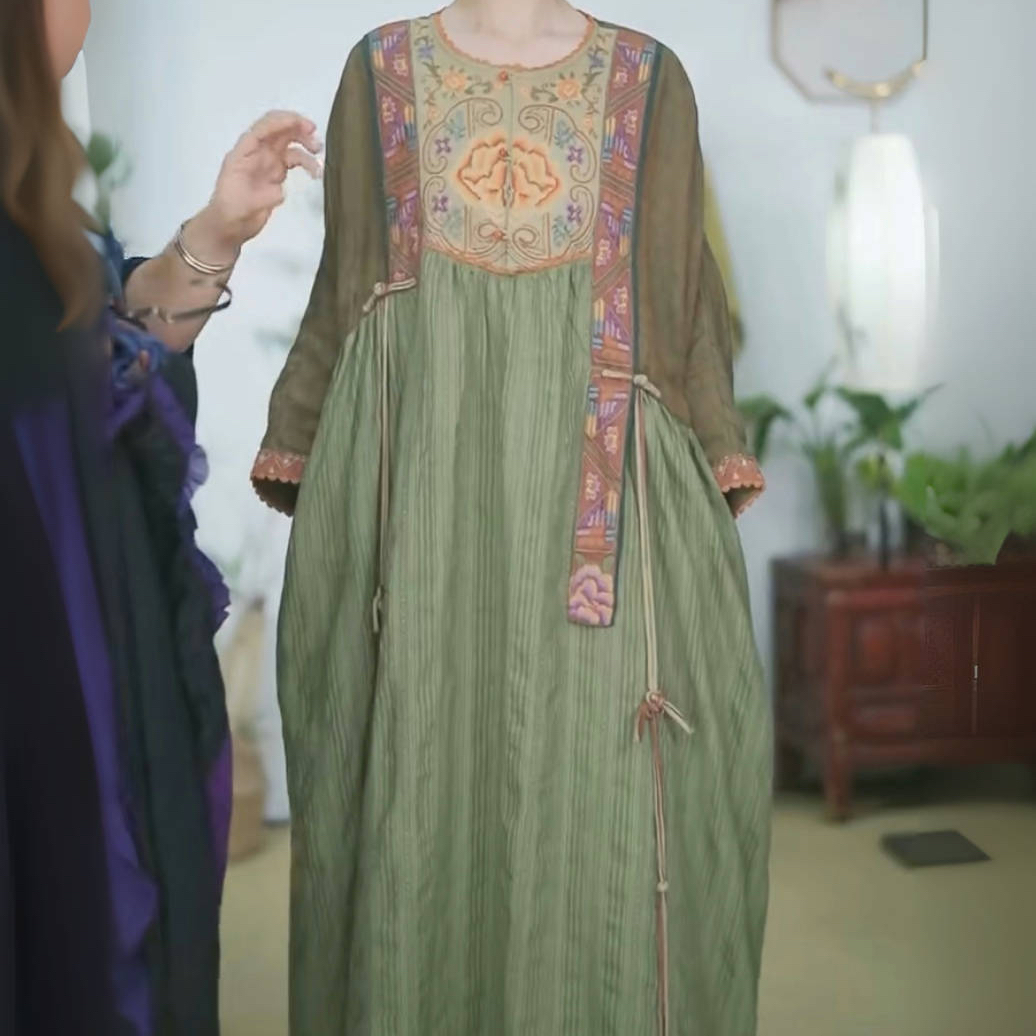 楚馨原创棉麻重工刺绣袍子国风文艺复古民族风宽松提花长袖连衣裙