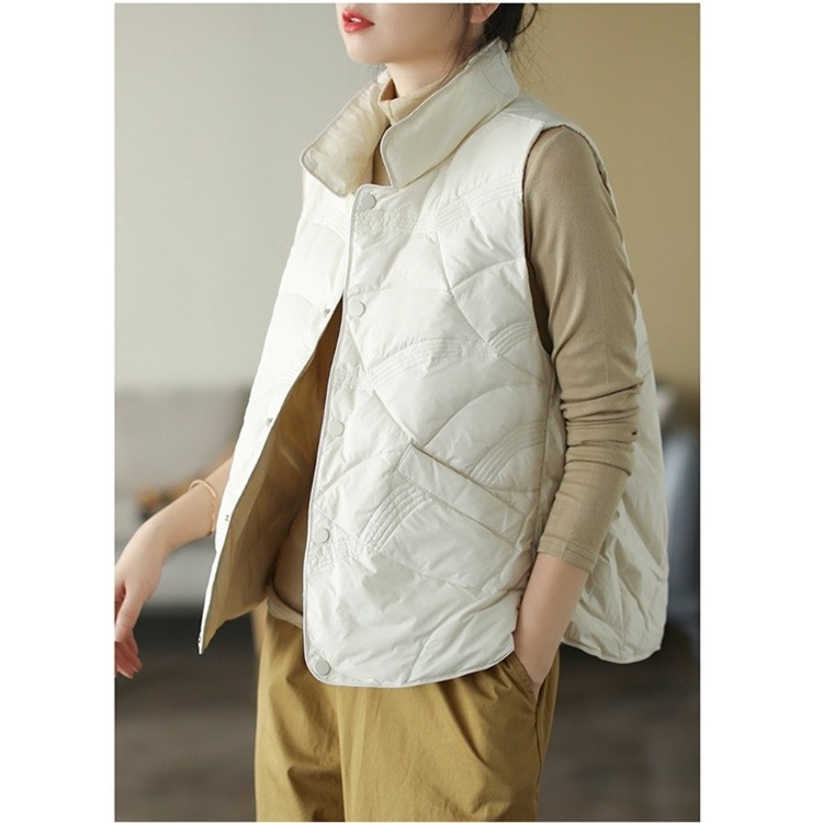 品牌清仓时尚宽松保暖羽绒棉衣马甲女复古暗扣立领棉服背心外套冬