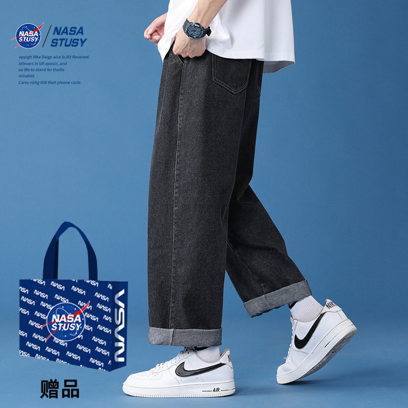 NASA STUSY美式高街2025新款秋冬装宽松直筒牛仔裤男款休闲长裤子