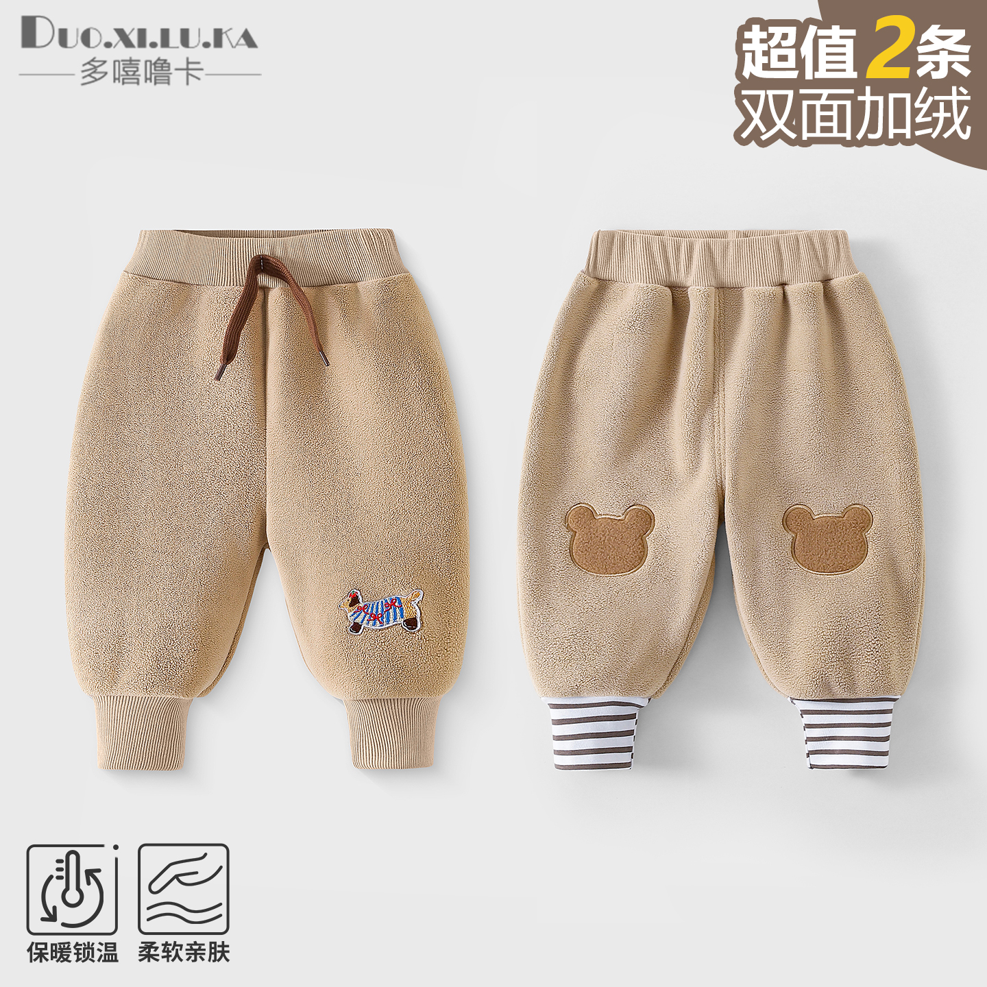 2件 男女童裤子奥粒绒秋冬宝宝加绒长裤秋款休闲小童卫裤婴儿休闲