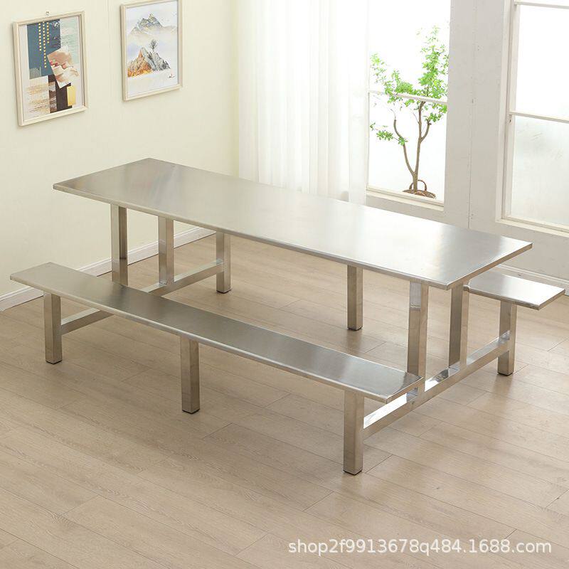 不锈钢食堂餐桌椅玻璃钢长方形早餐店连体4/6/8/10人员工饭堂学校