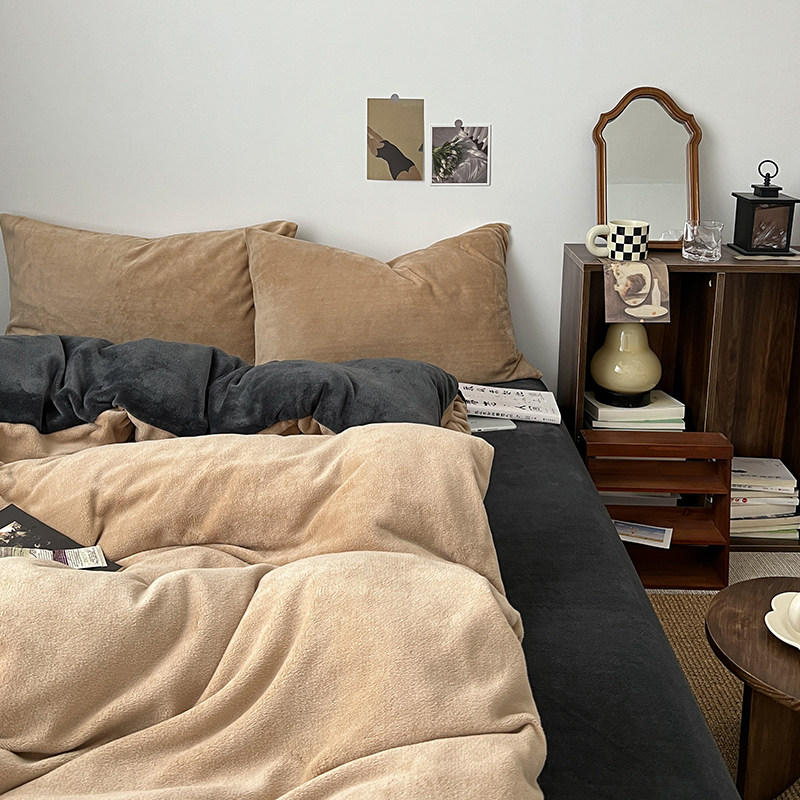 床单款四件套牛奶绒简约蓄热保暖