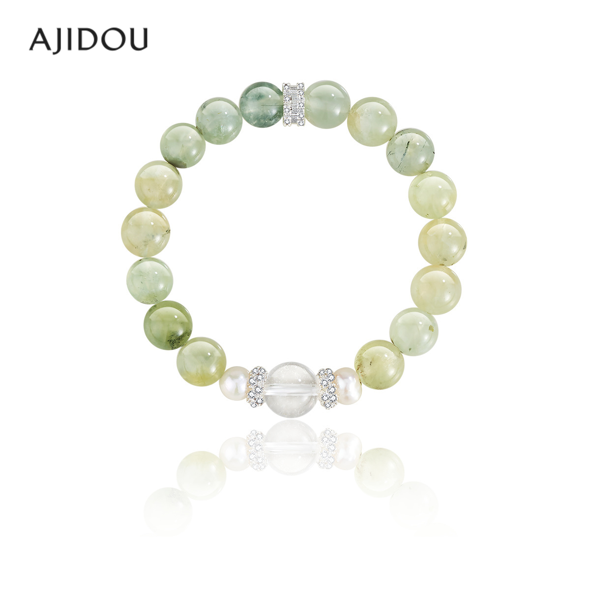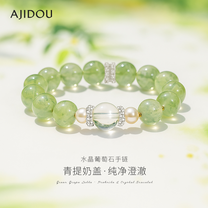 AJIDOU阿吉豆手链女款天然水晶葡萄石串珠绿幽灵手串招财转运手饰