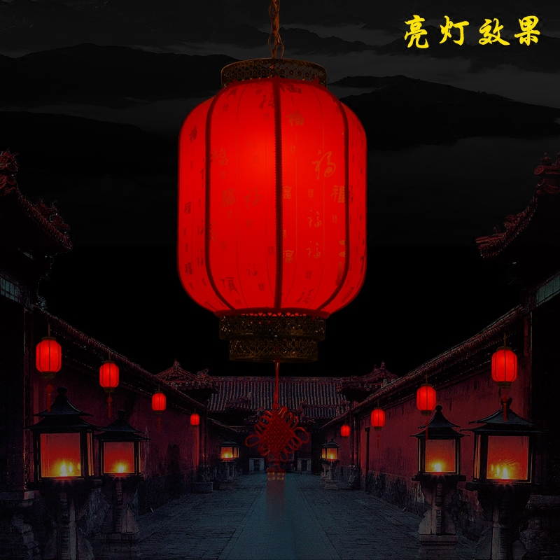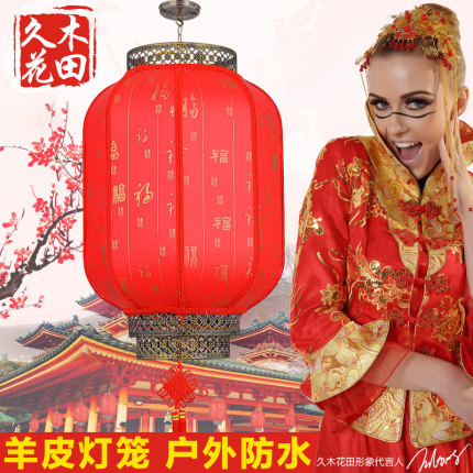大红灯笼户外防水防晒仿羊皮吊灯中式喜庆挂饰阳台仿古长冬瓜灯笼