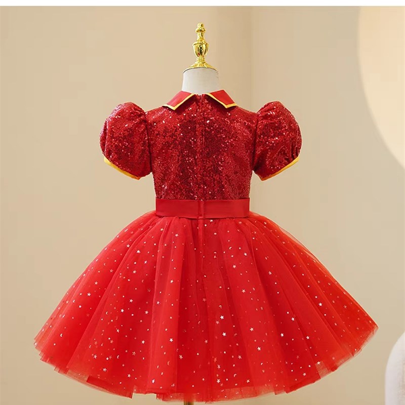 中式红色公主裙女童礼服裙蓬蓬裙六一儿童合唱演出服小主持人高端