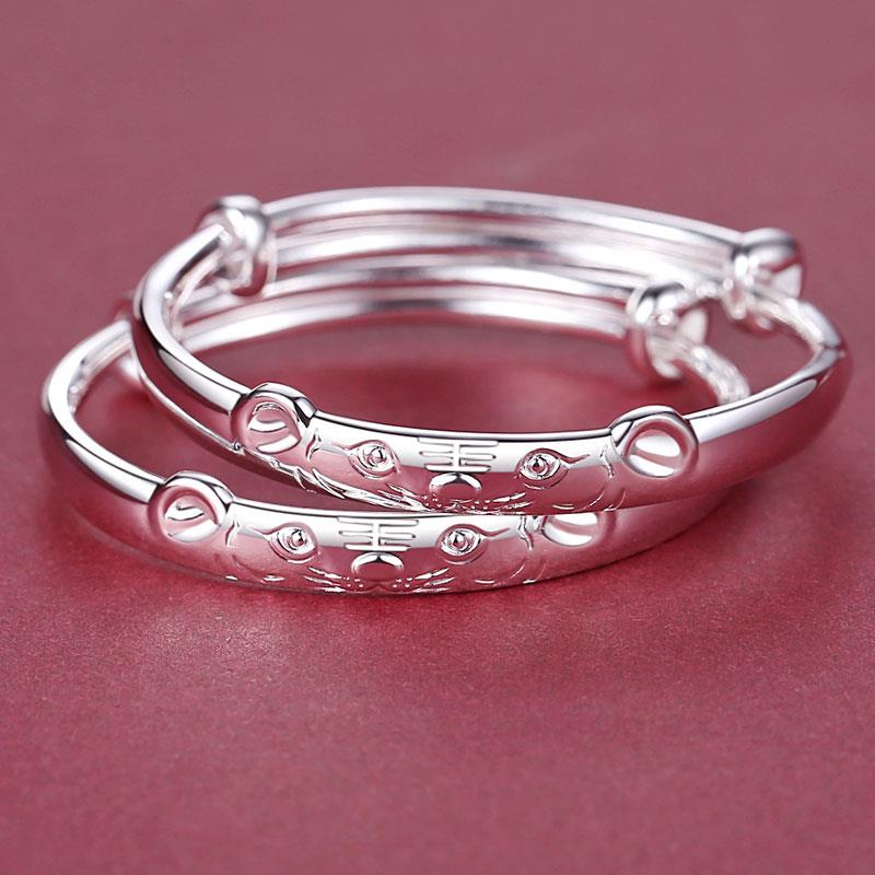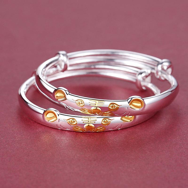 正品鼠猪宝宝足银999纯银手镯子婴儿童长命9男女小孩满月百日周岁