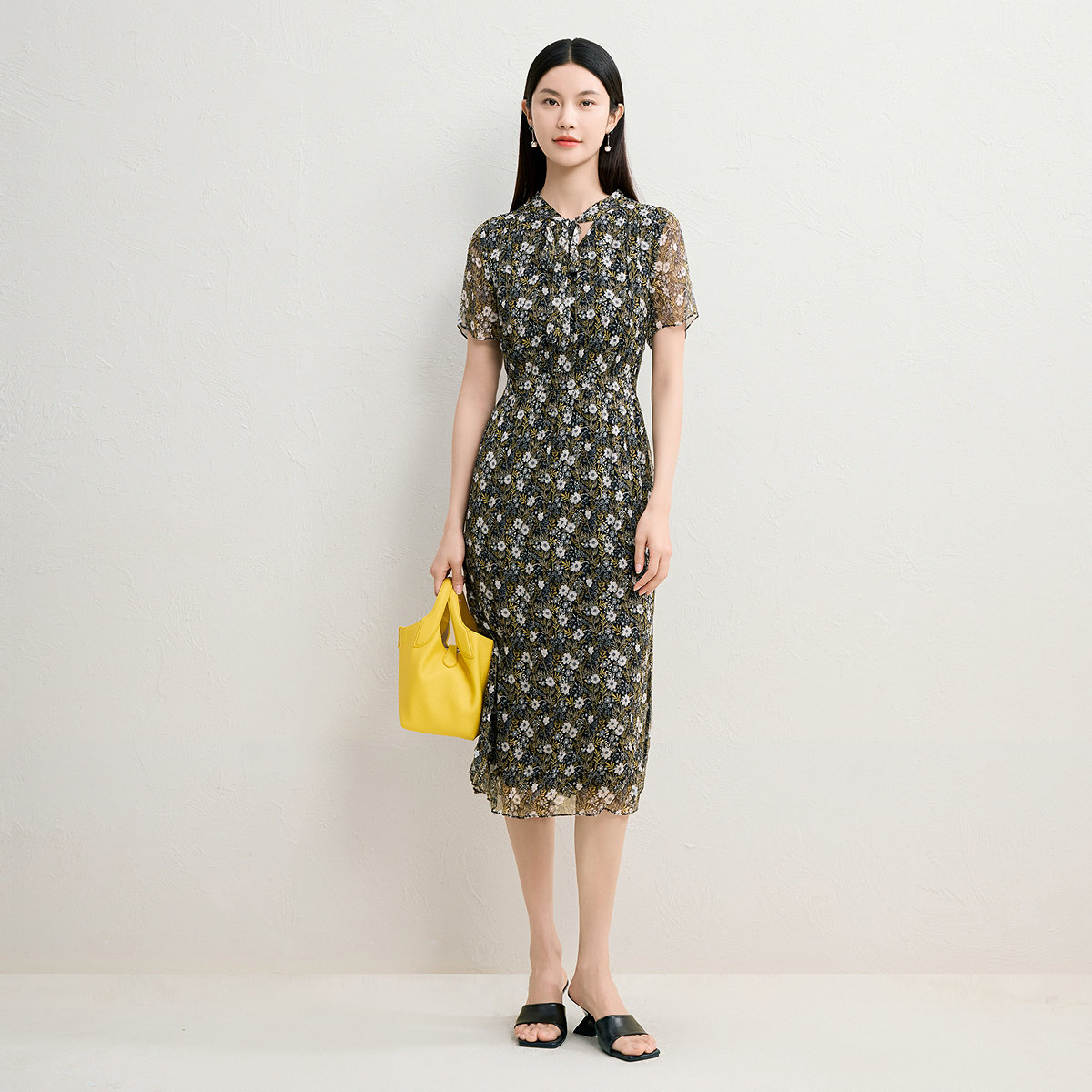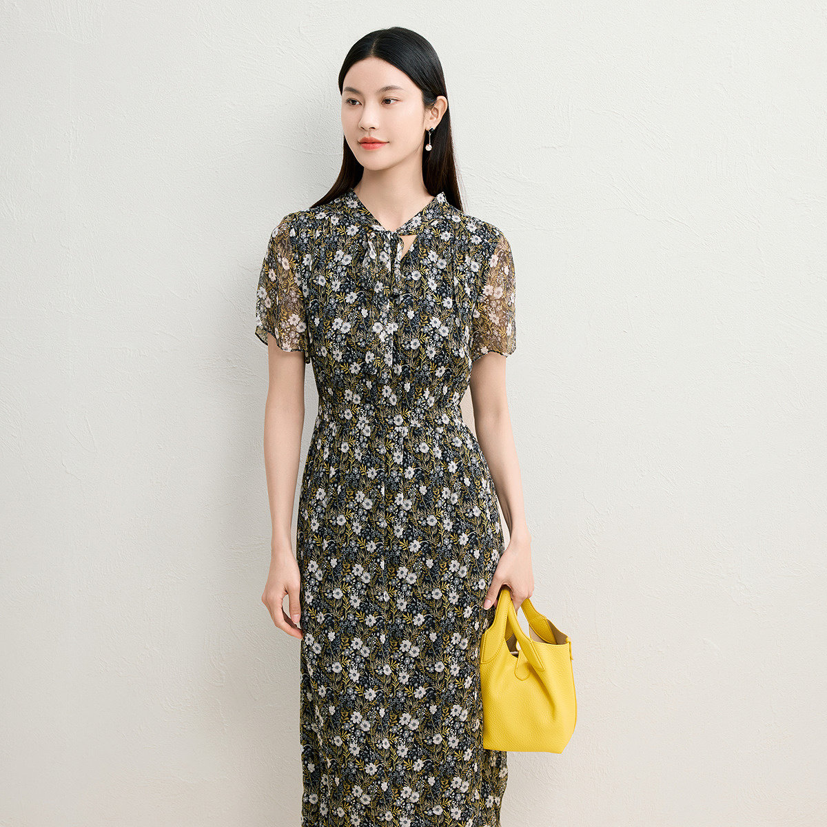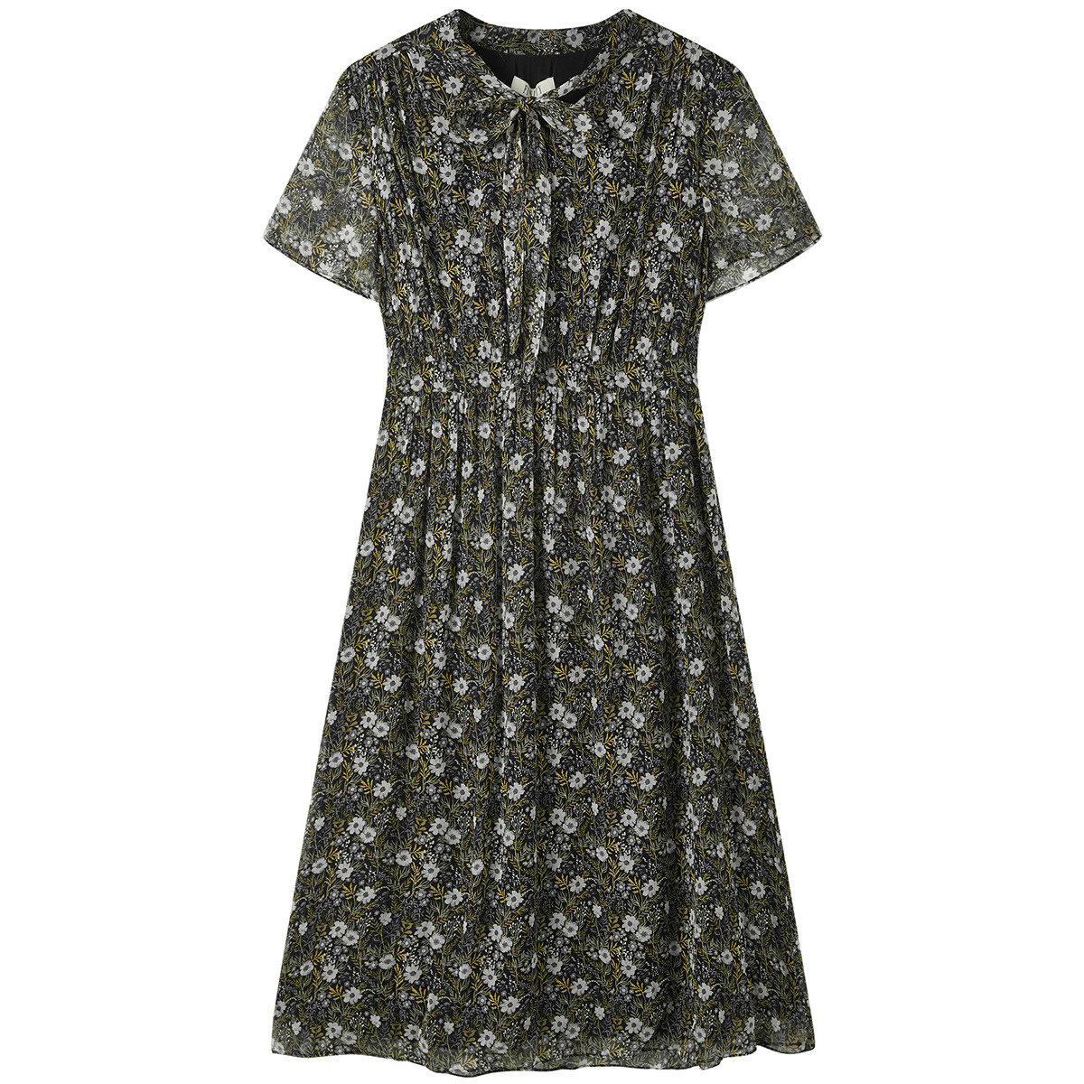 【天然真丝】FINITY菲妮迪连衣裙2026夏季新款黑色印花短袖长裙女