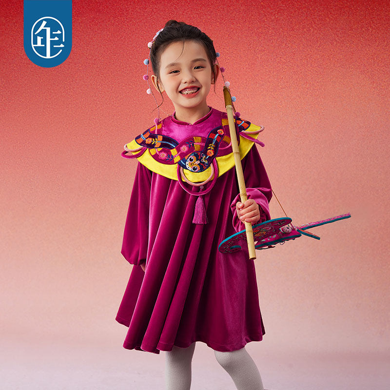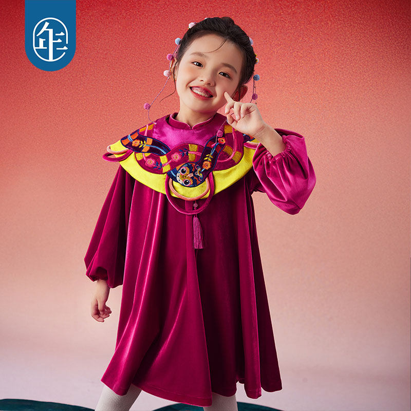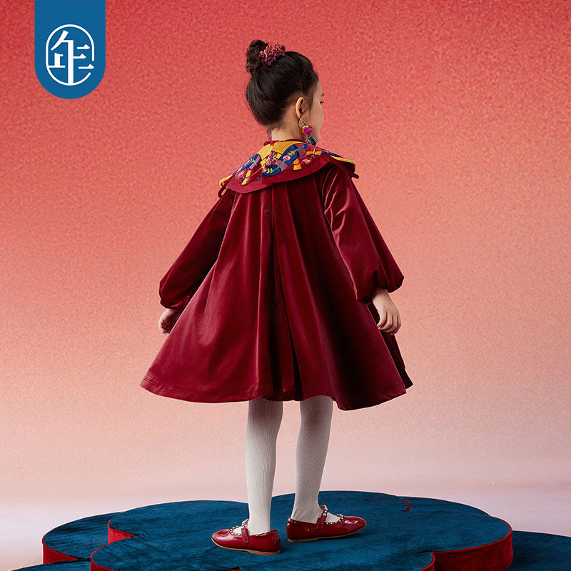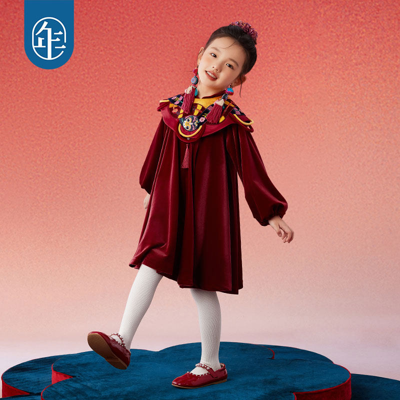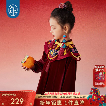 年衣童装女童连衣裙冬装儿童A字裙宝宝丝绒云肩公主裙演出服礼服