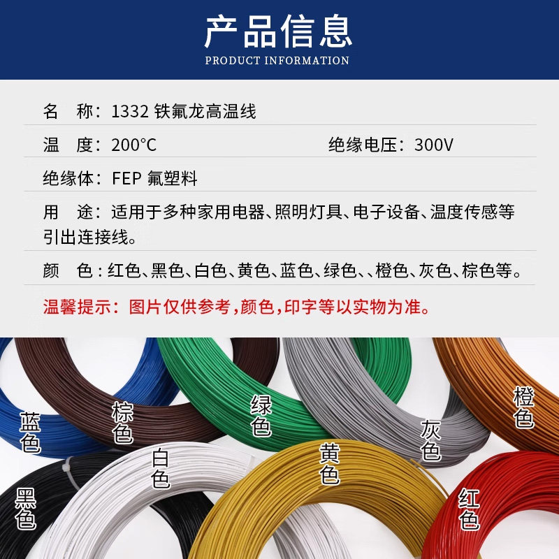 铁氟龙高温线 1332 18 16 14 12AWG绝缘线 耐油耐酸 电子线导线