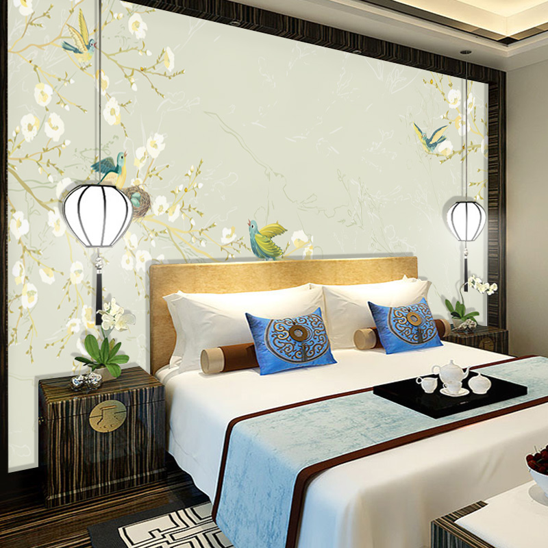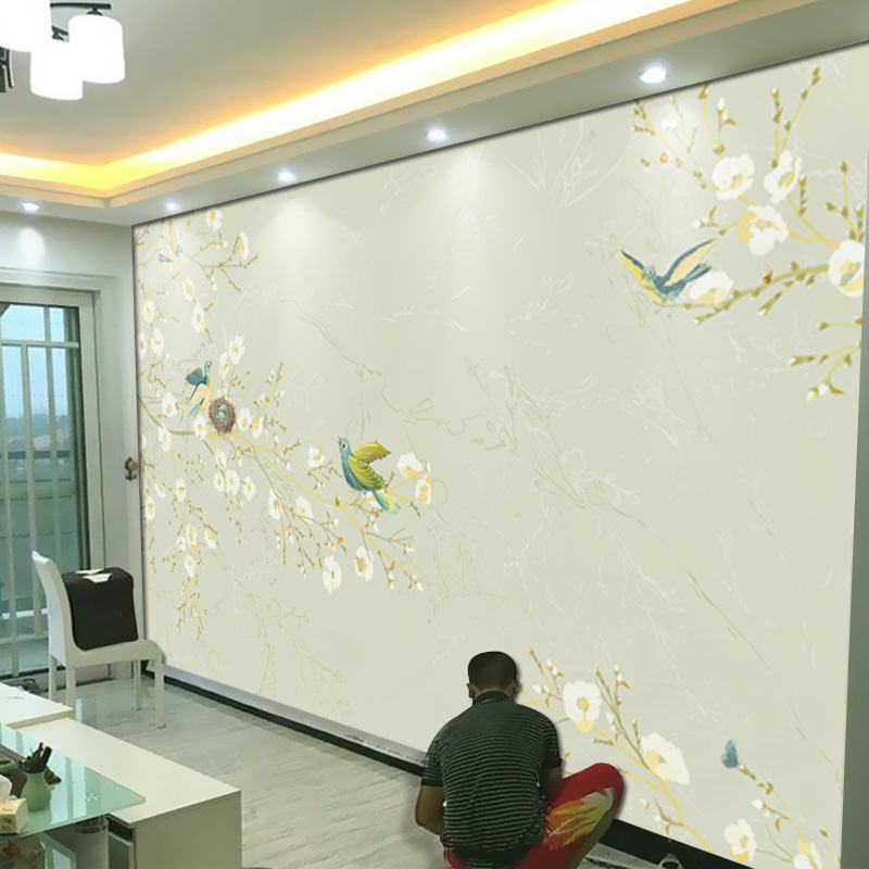 i居家8d新款大型壁画电t视背景墙壁纸新厅花中式无W纺布墙纸工家