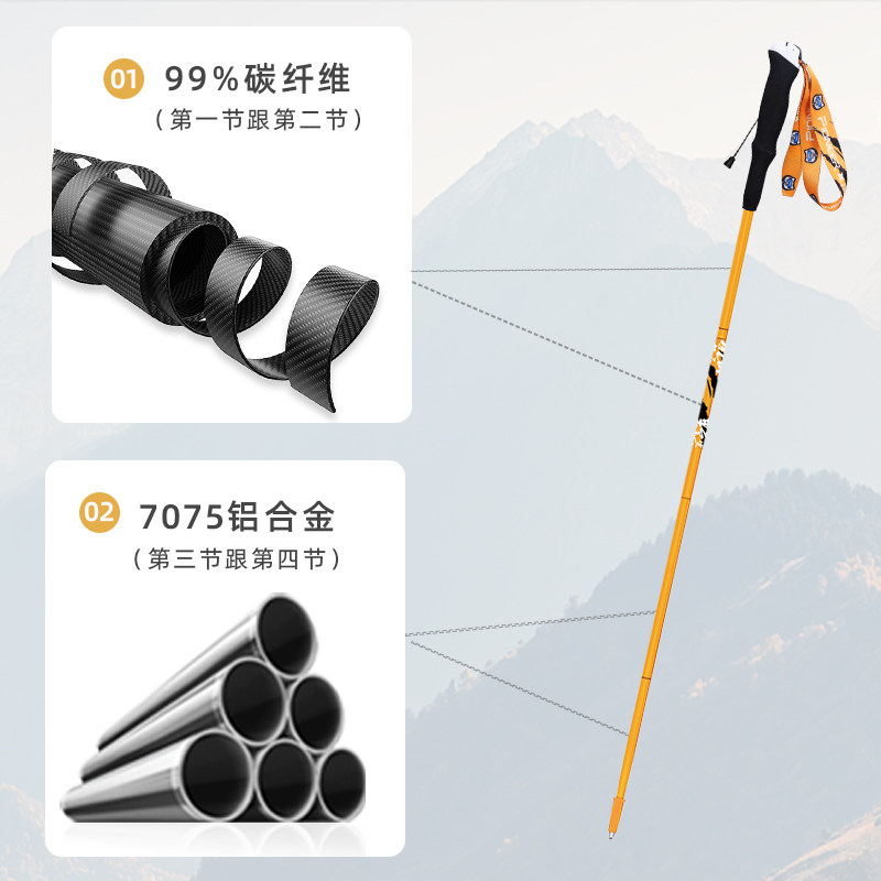 新款柴古联名款越野仗 碳纤维加铝合金超轻手杖 登山杖越野跑装备