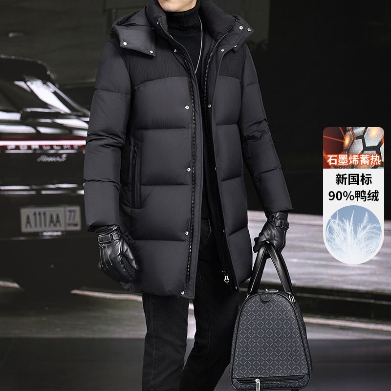 男士中长款羽绒服2025冬季新款爸爸装加厚防寒外套连帽保暖大衣潮