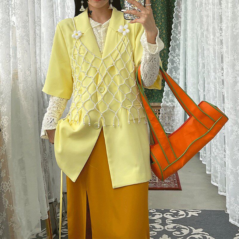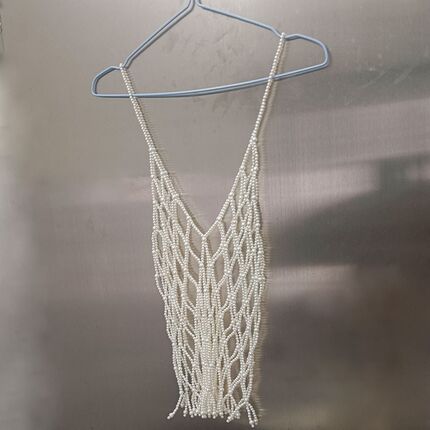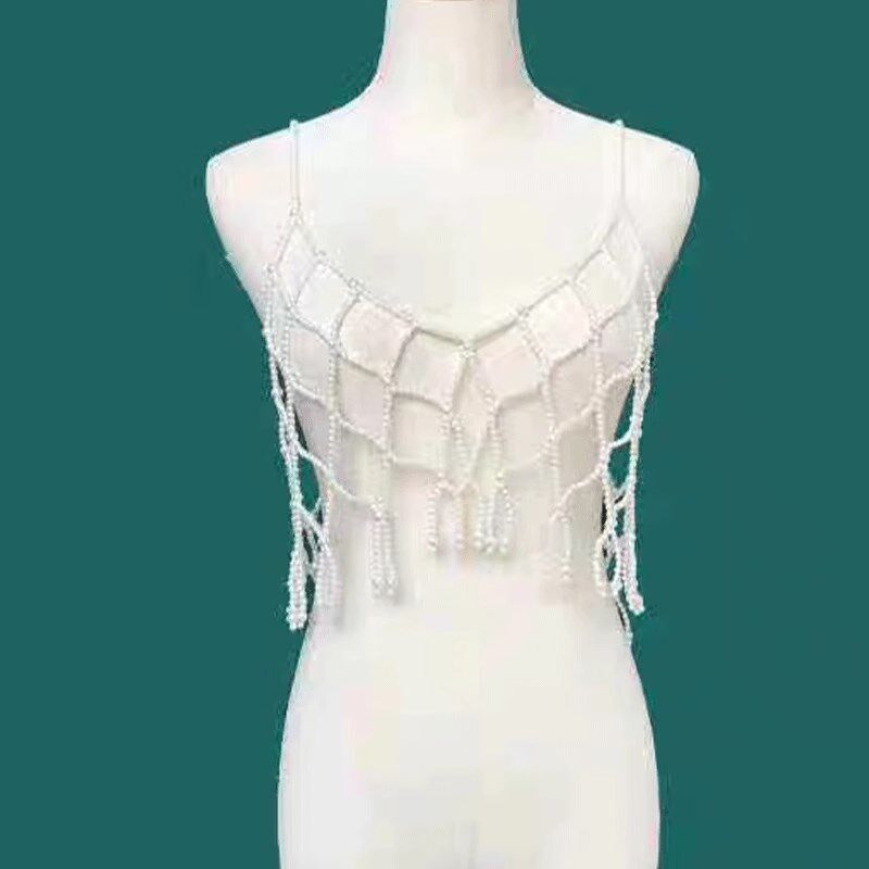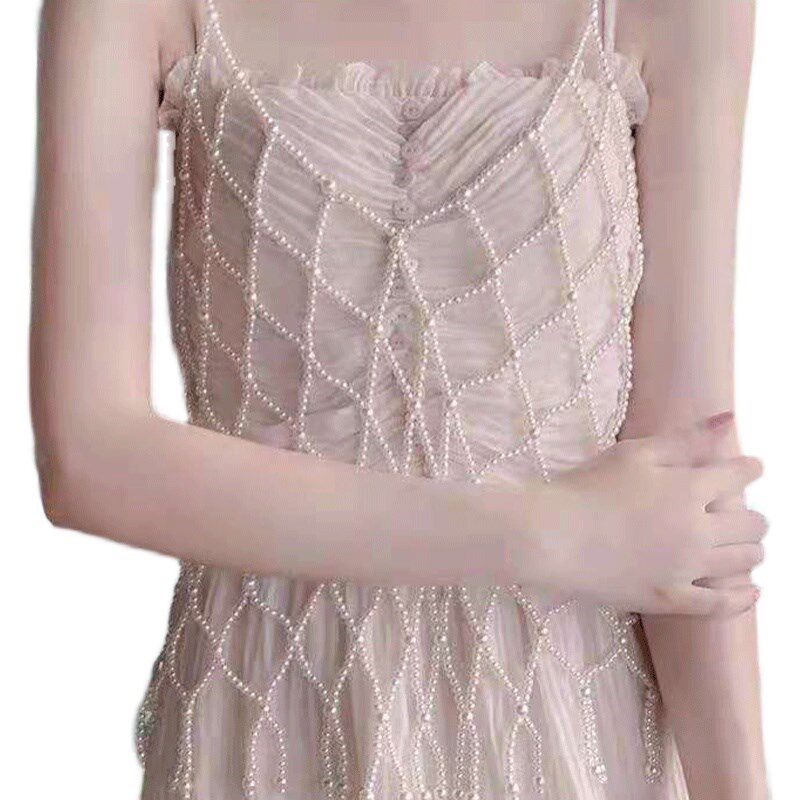 新款珍珠吊带裙镂空背心女清新个性礼服女装马甲百配搭衬衫连衣裙