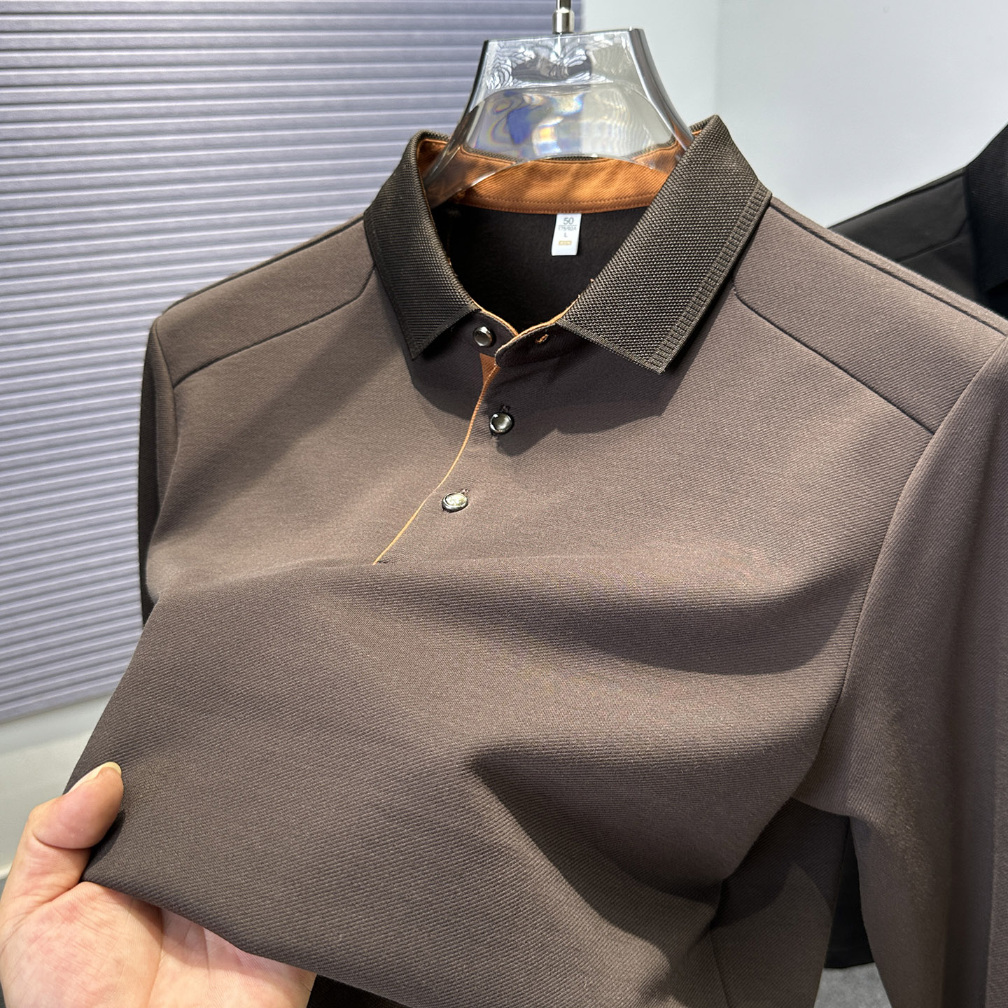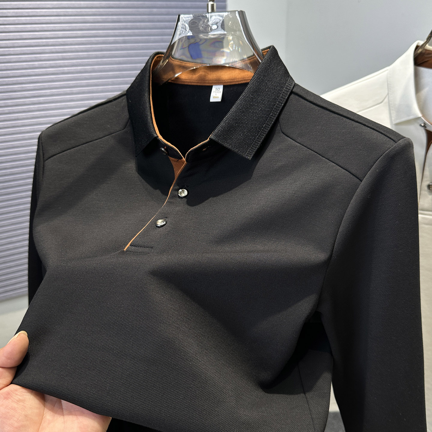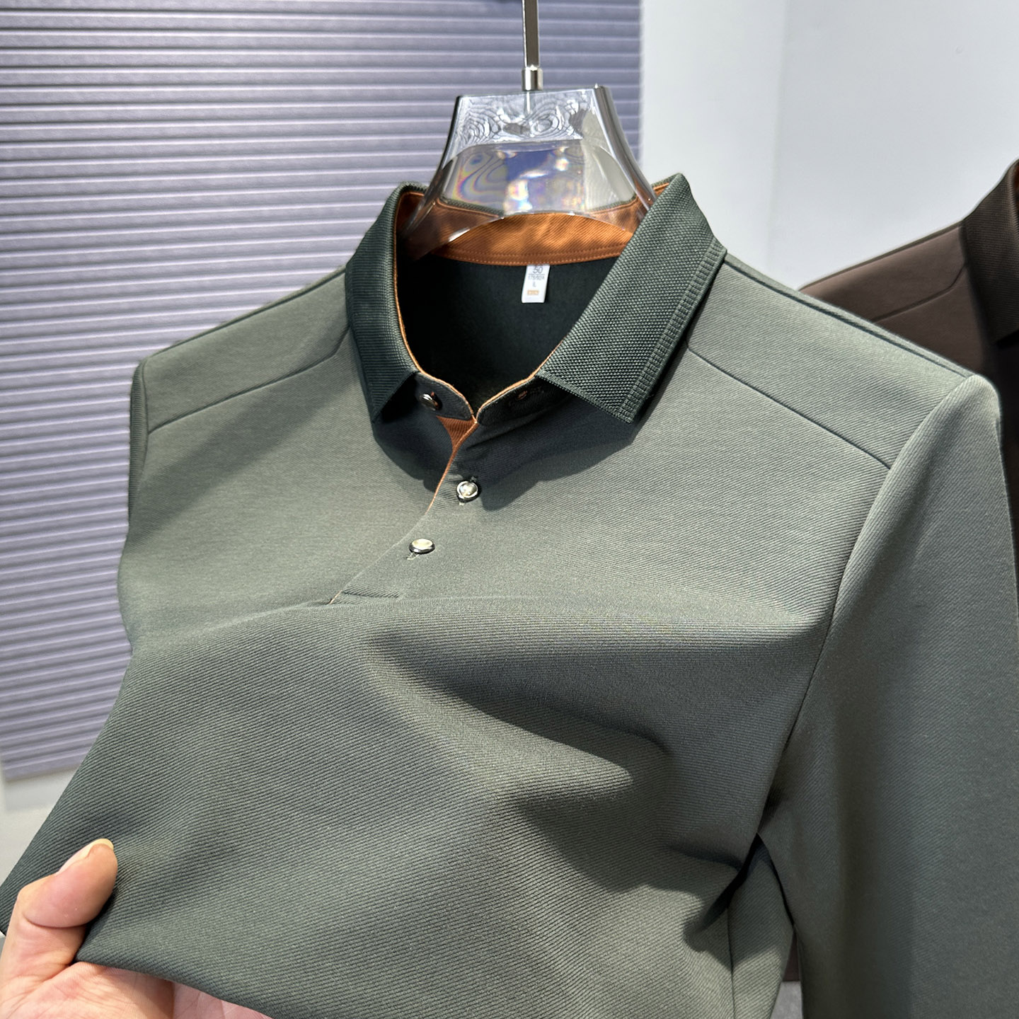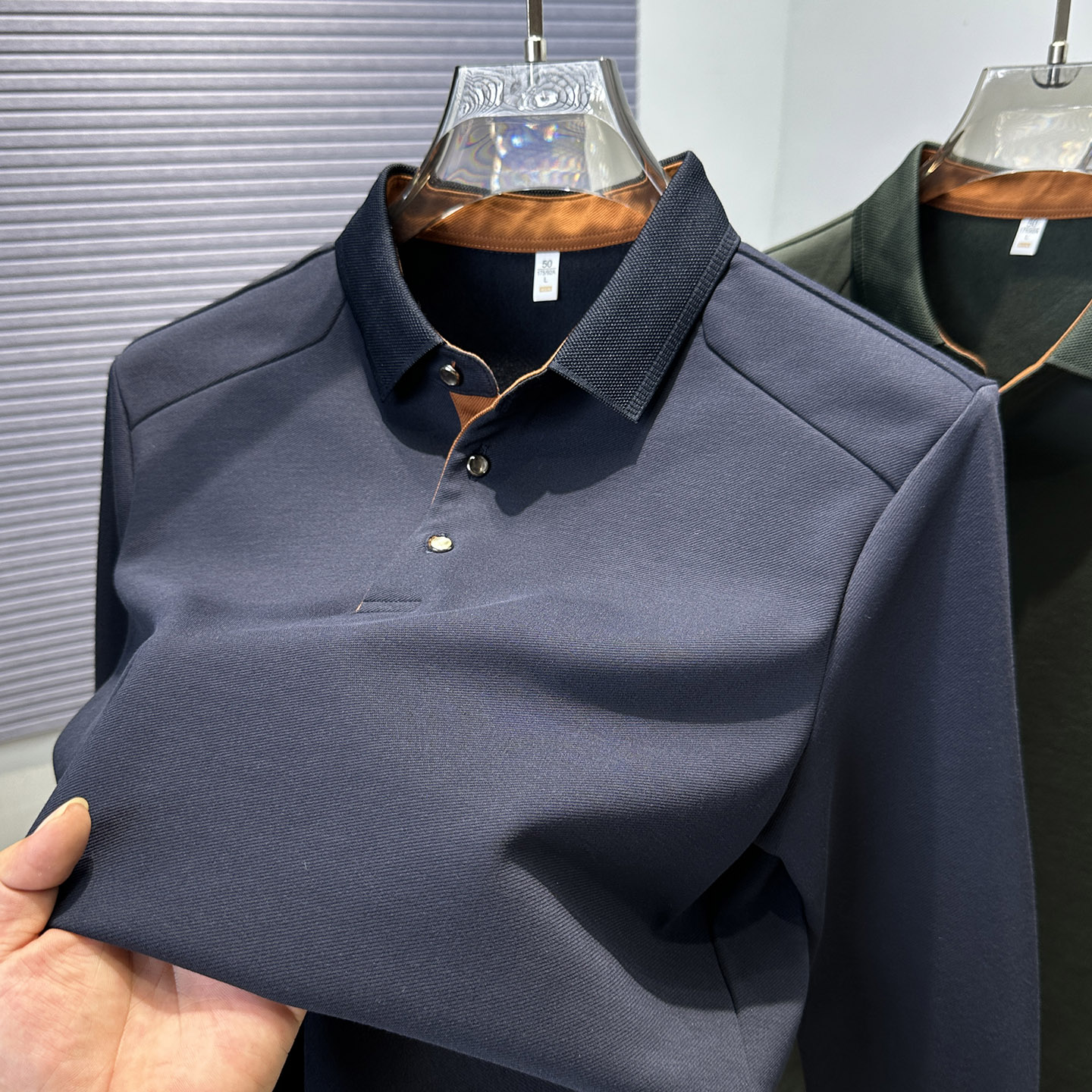 内里磨毛t恤男长袖秋季男装商务休闲宽松纯色拼接polo衫翻领上衣