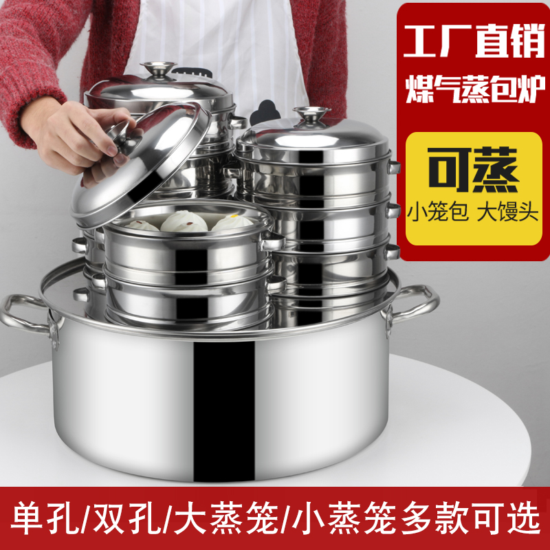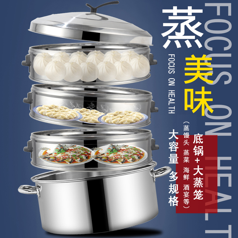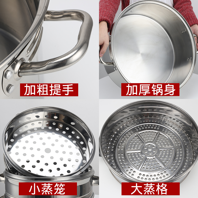 不锈钢锅大容量超大蒸锅家用特大号多层蒸包子馒头的蒸笼商用煤气