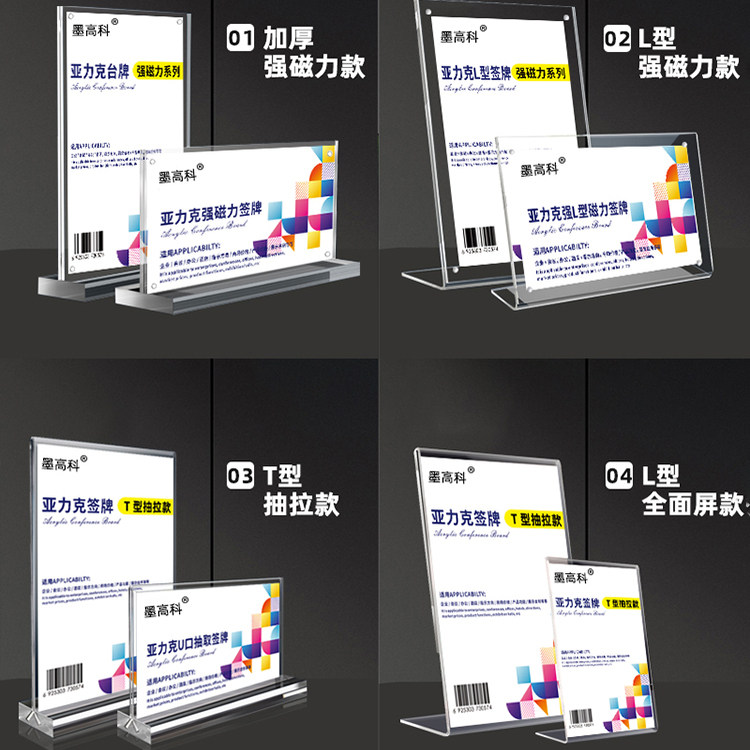 A4亚克力台卡价格展示牌菜单桌牌A3强磁台签L展示架水牌广告牌透明姓名牌桌摆台牌T型立牌定制会议牌餐标价牌