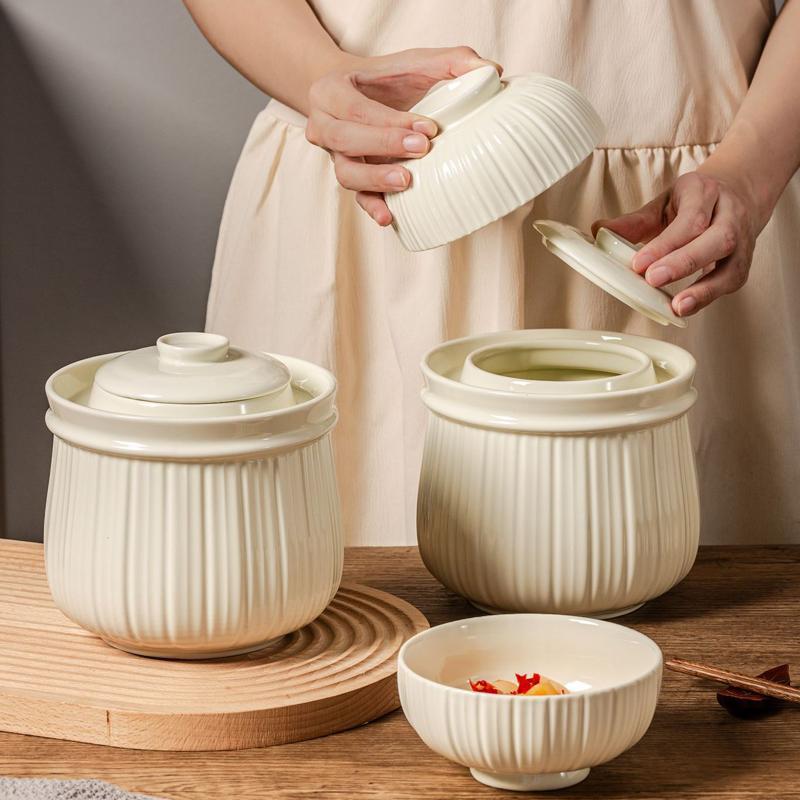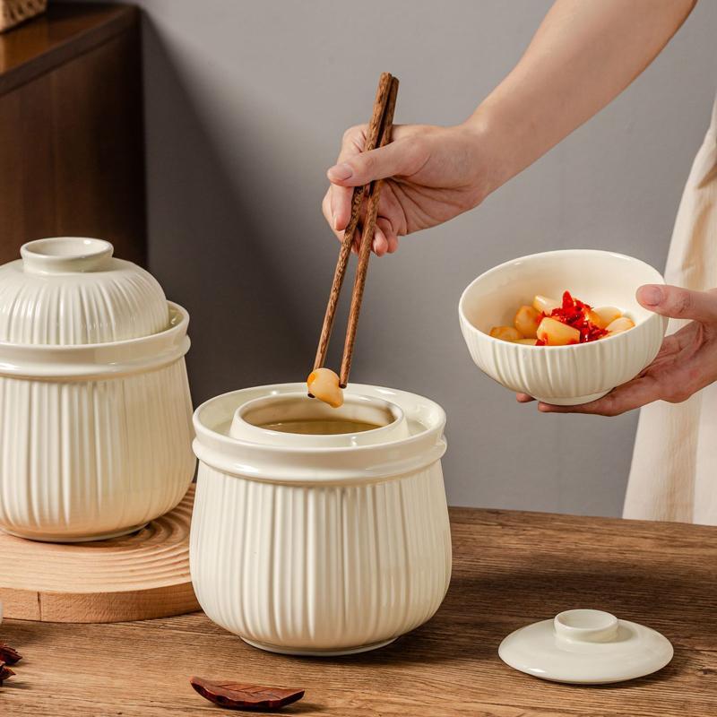 陶瓷泡菜坛子土陶家用腌酸菜腌菜罐密封内盖咸菜罐子大容量泡菜罐
