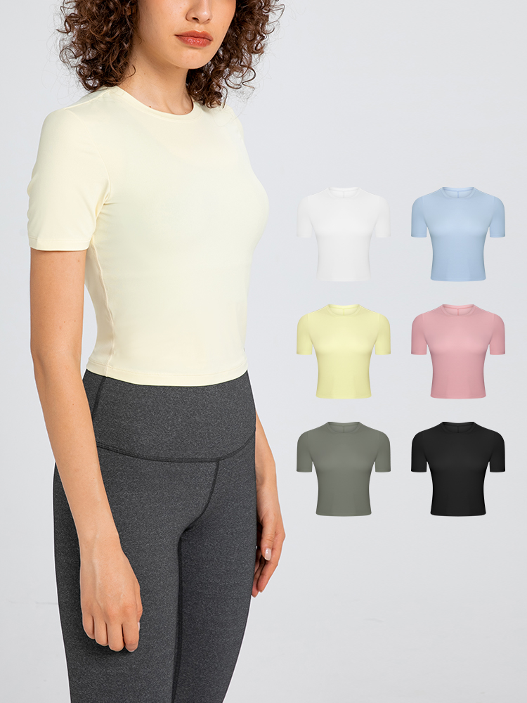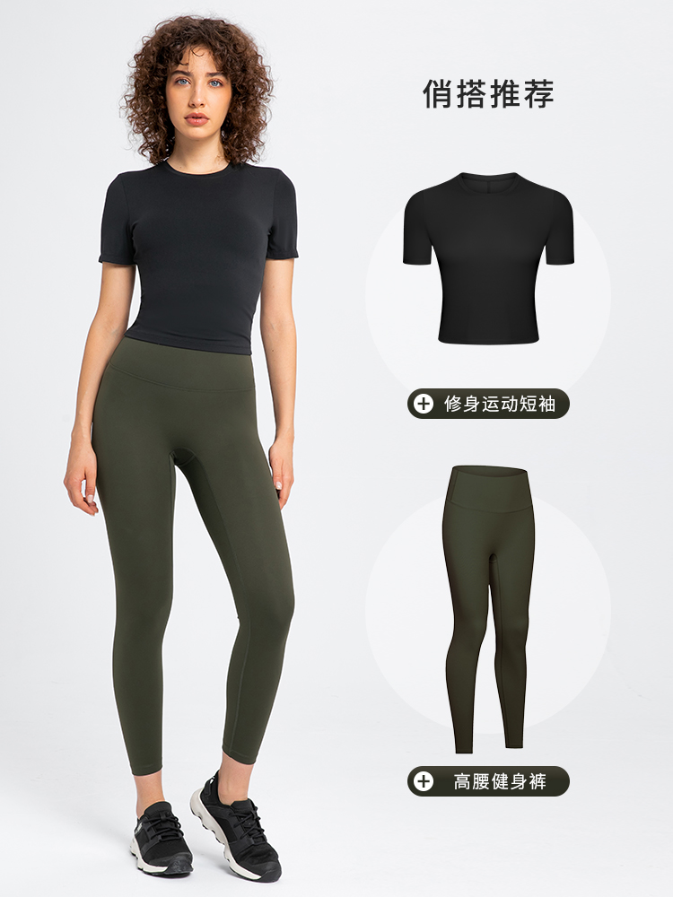 健身服女小个子短袖性感紧身速干高弹瑜伽服上衣运动跑步训练T恤
