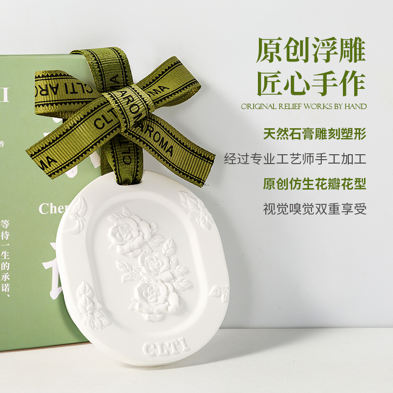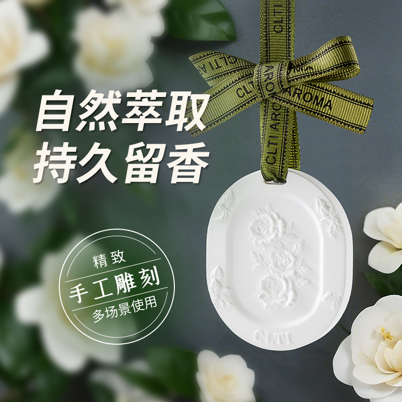 高级栀子花车载香薰汽车挂件车用香片扩香石膏装饰品香水香氛摆件