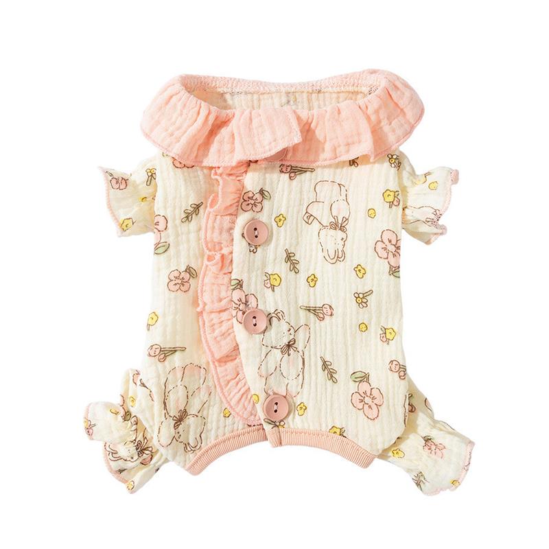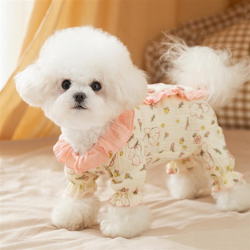秋冬季宠物狗狗衣服双层纱公主花边包肚衣泰迪小型犬四脚衣猫睡衣
