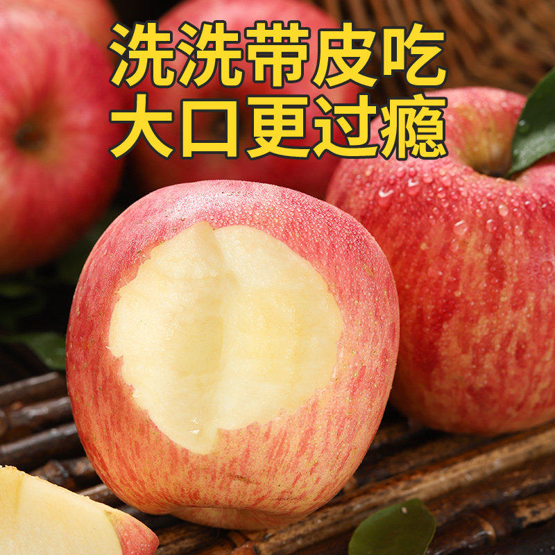山西红富士苹果孕妇儿童可食清甜丰富色泽脆甜不面新鲜好吃条纹