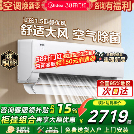 以旧换新美的空调静优风大1.5匹挂机一级变频冷暖家用卧室除菌