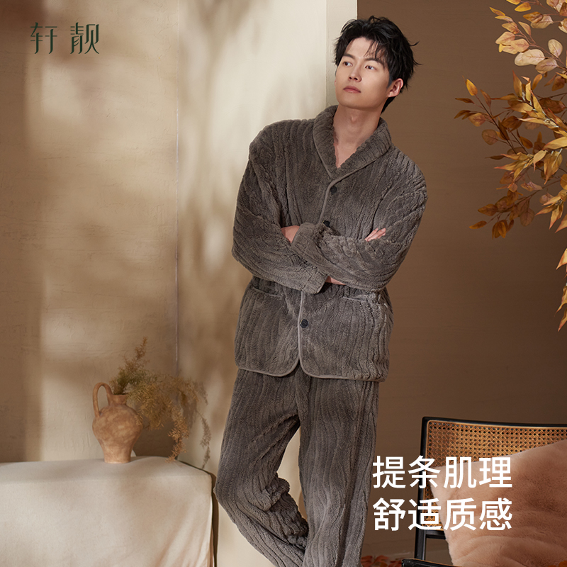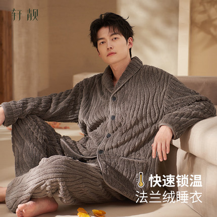 轩靓2025新款睡衣男士冬季加绒加厚款法兰绒保暖珊瑚绒家居服套装
