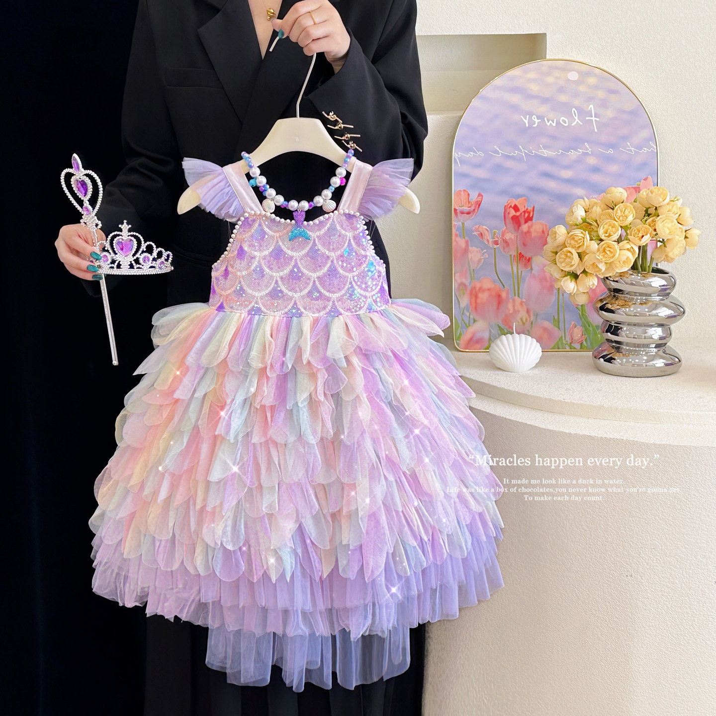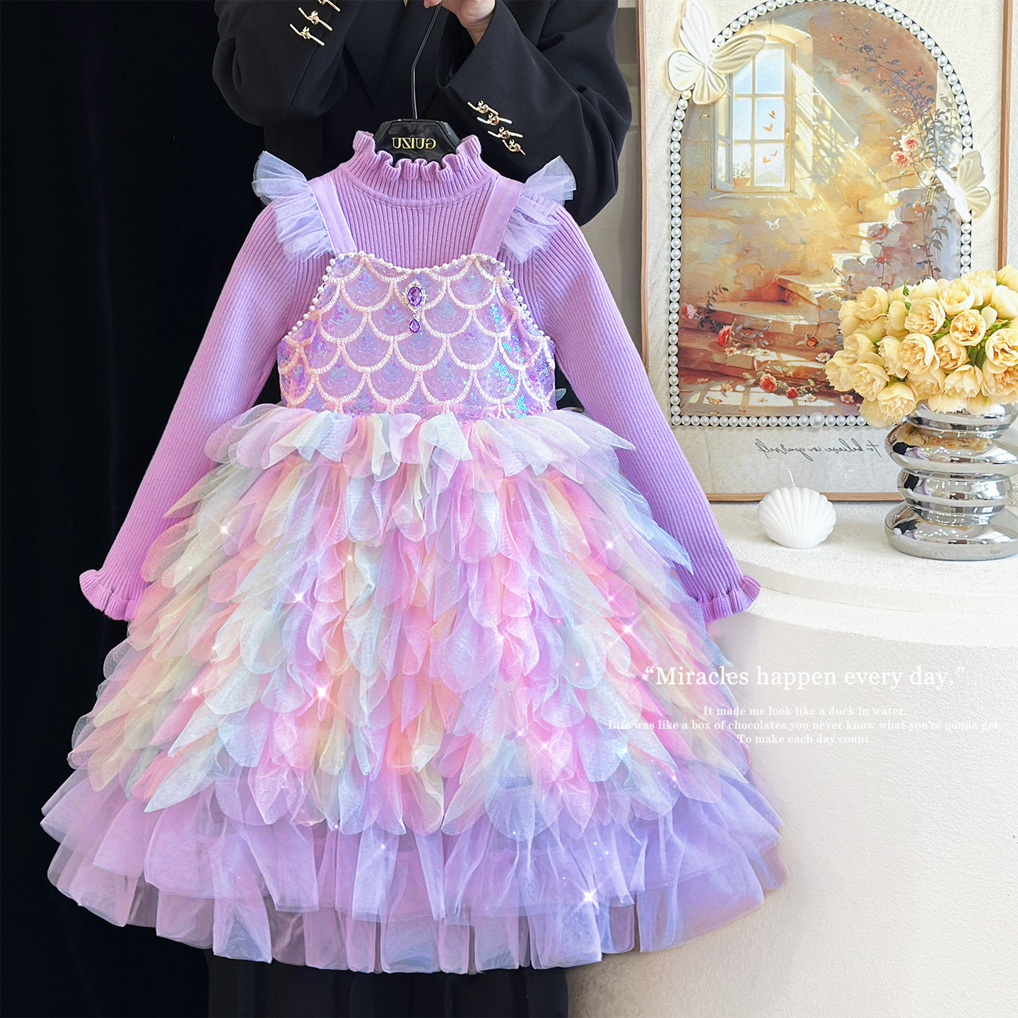 美人鱼公主裙女童秋冬高端小女孩吊带生日礼服裙子洛丽塔蓬蓬纱裙