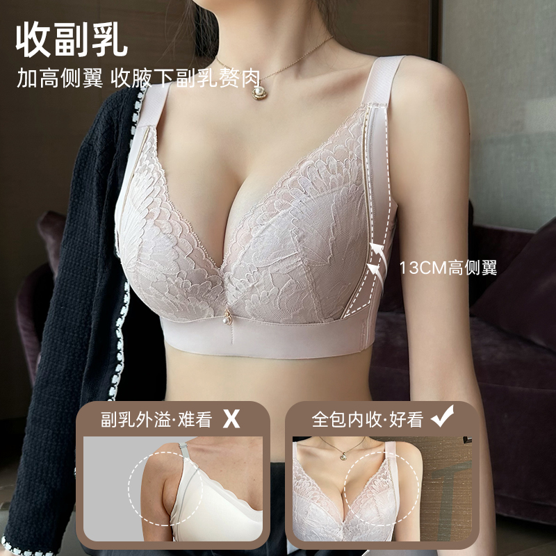 卉岩2025新款大胸显小内衣薄款防下垂文胸罩调整型美背聚拢收副乳
