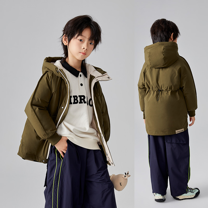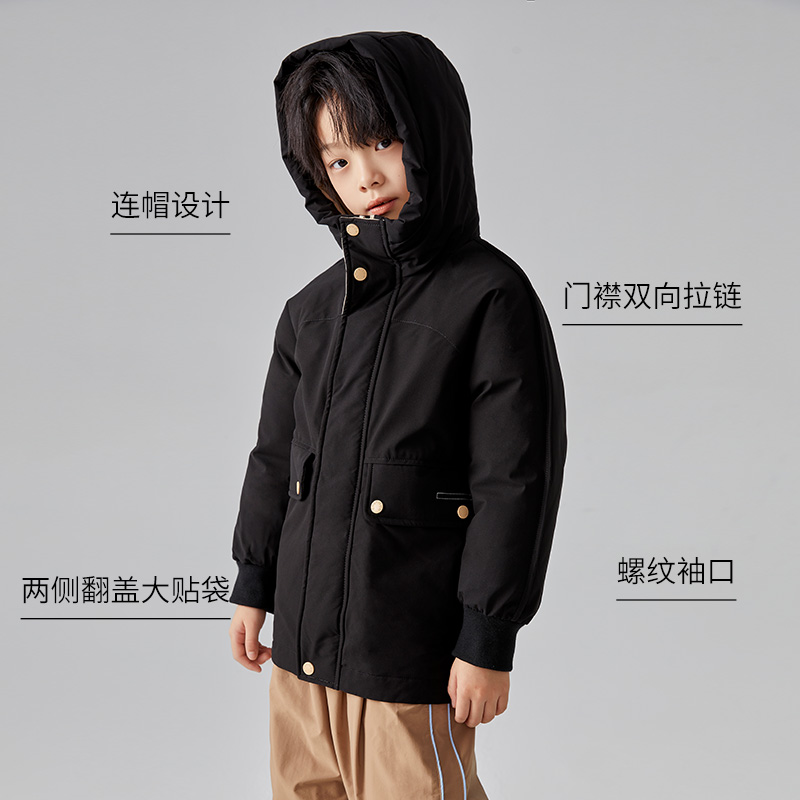 千仞岗冬童装工装风连帽羽绒服加厚保暖外套男童女童冬装
