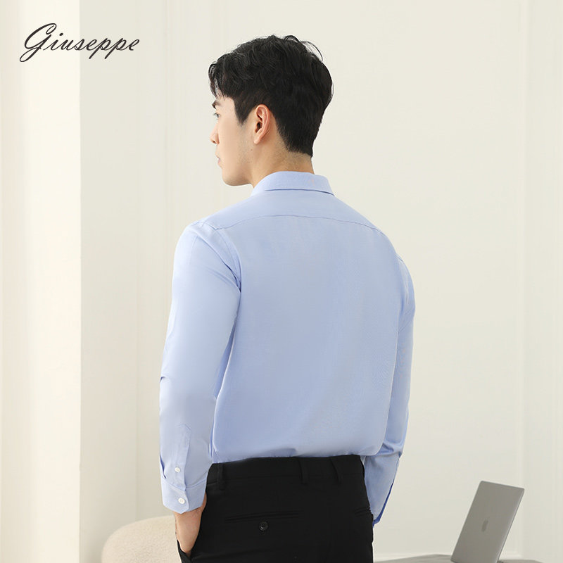 乔治白2025秋冬季衬衫纯棉男士长袖商务正装纯色通勤尖领休闲透气