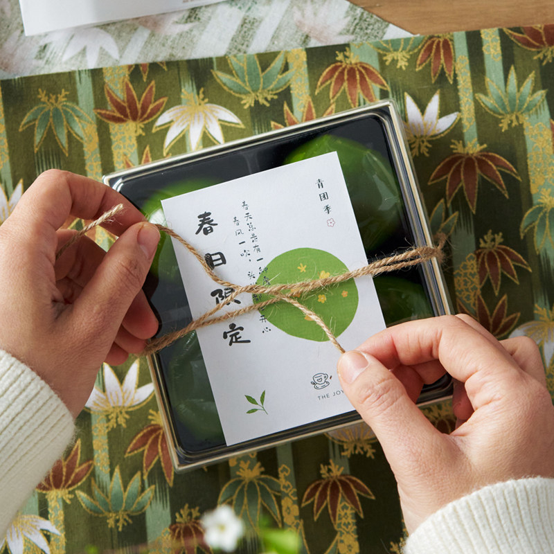 2026中式青团包装木盒子绿色方巾烘焙手工绿豆冰糕点心礼盒丝巾布